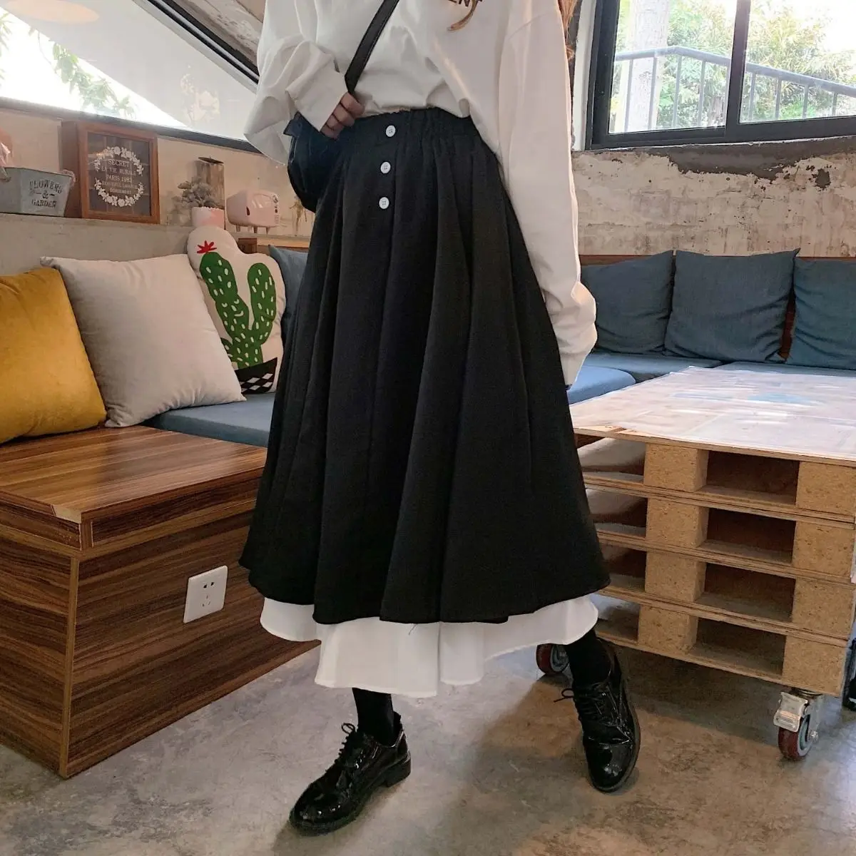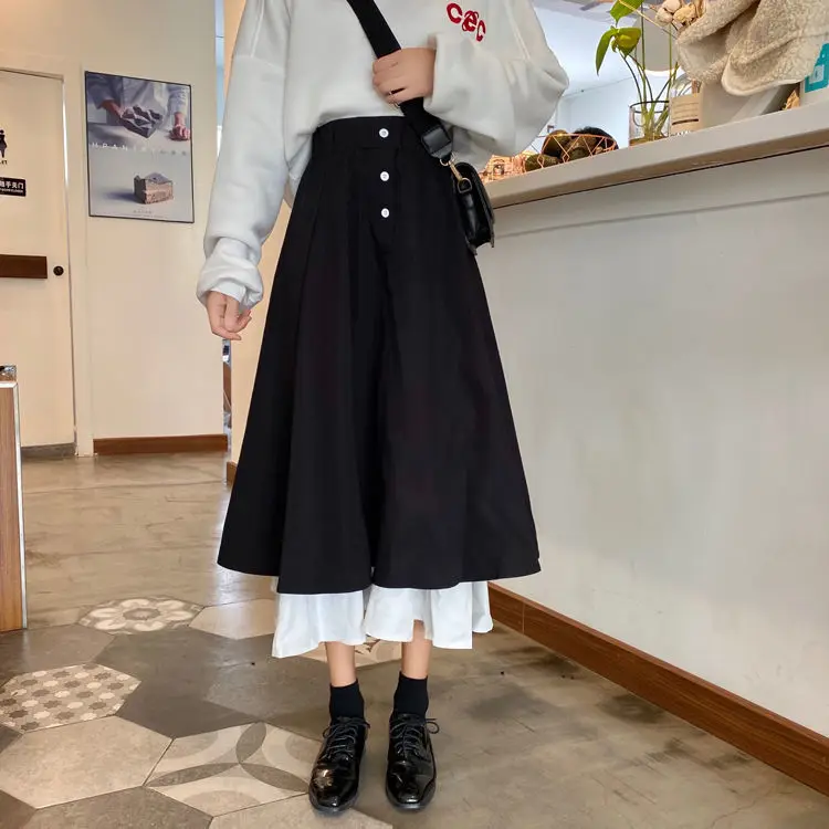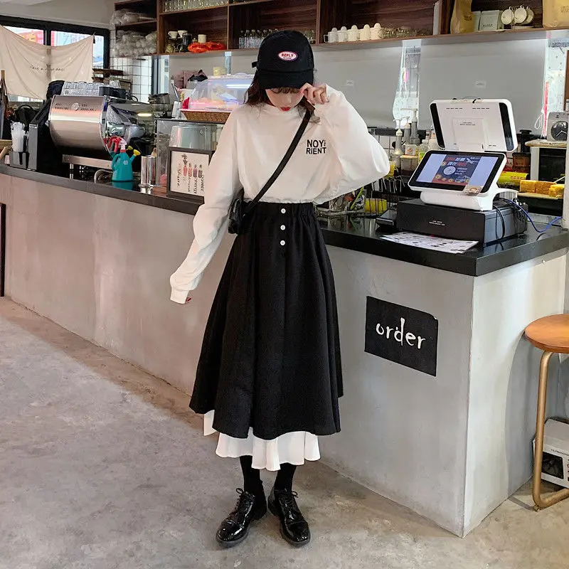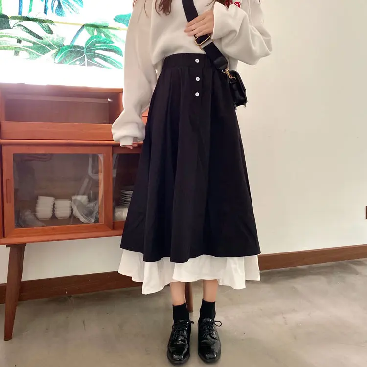 Женская юбка с завышенной талией, длинная трапециевидная юбка в Кор...