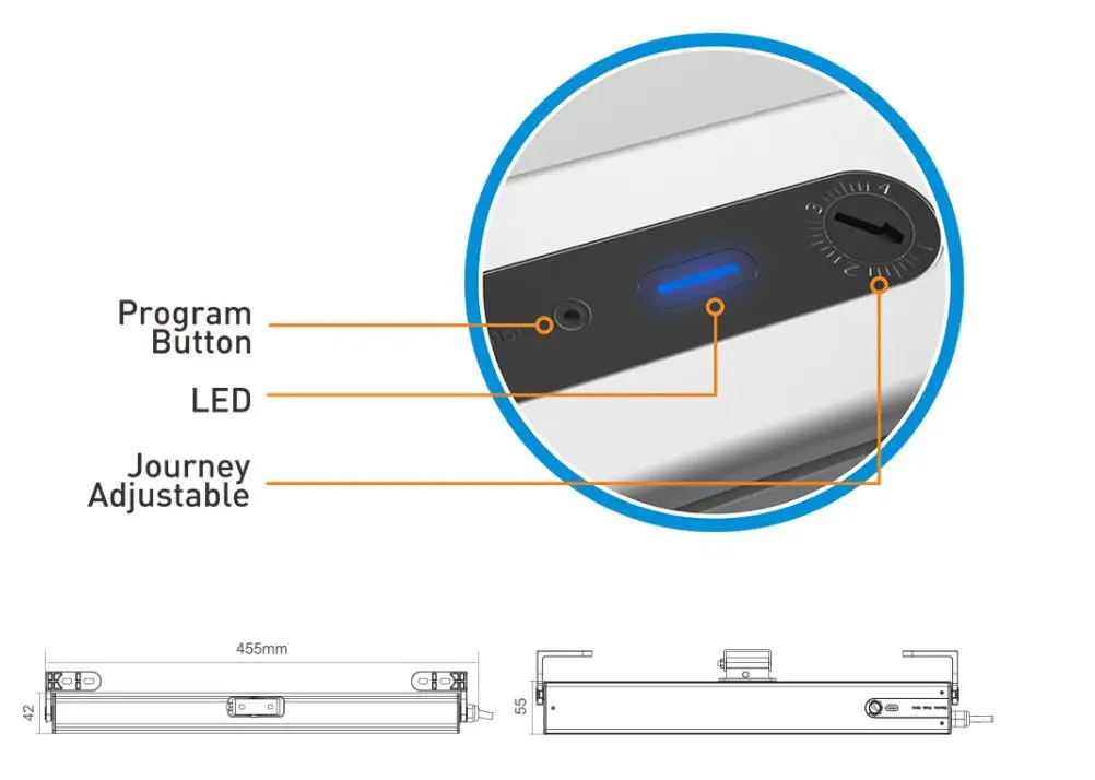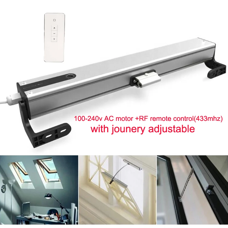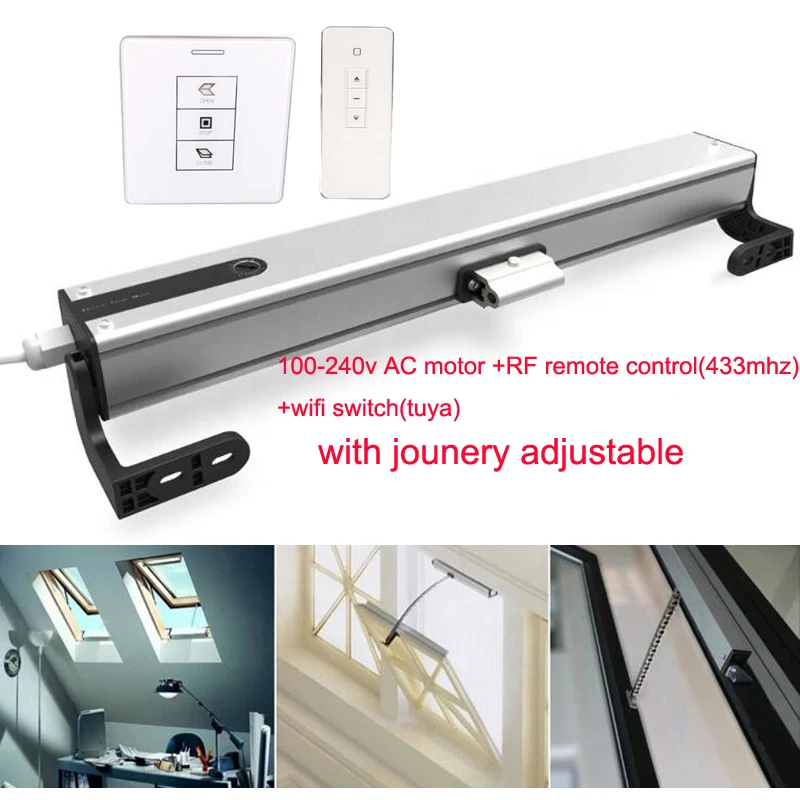 -Широкий вход напряжения 100-240 В переменного тока, подходит для всех стран.-Регулируемая длина стрейч 100-400 мм.-Подходит для окон размером 470 мм.-Долговечность, срок службы более 10000 раз открываются и закрываются.-Двухслойная цепь из нержавеющей стали, работает плавно.-Два огнестойких держателя из АБС-пластика и направляющая для скольжения POM делают двигатель более тихим и безопасным.-Легко устанавливается и снимается.