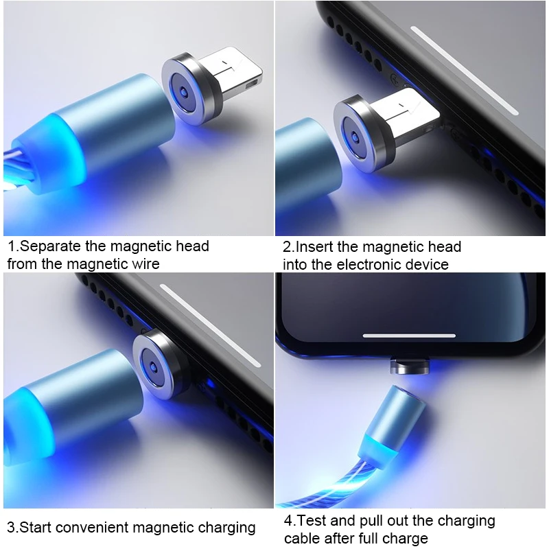 Feature 1Flowing Light Magnetic Fast Charging Charger Cable 360 Degree Roating