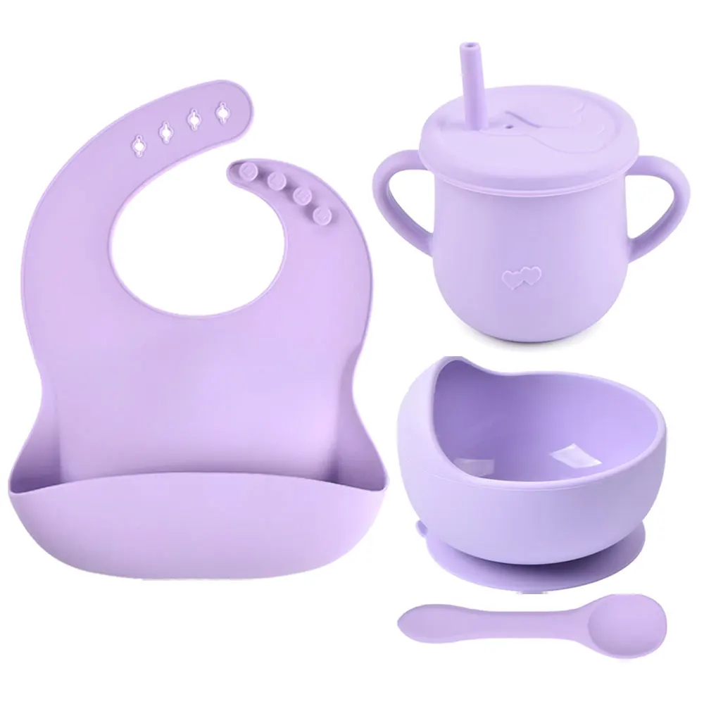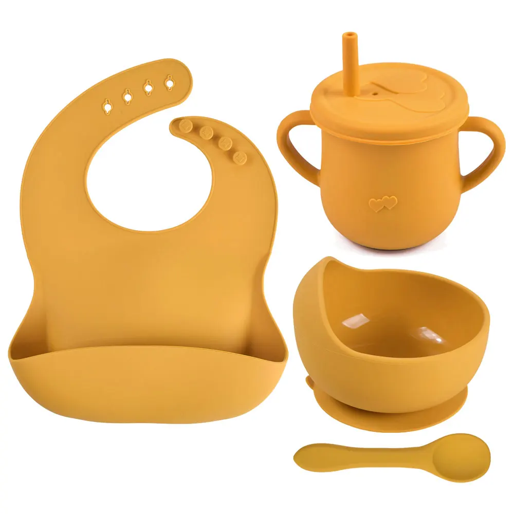 Силиконовая тарелка для кормления для малышей, герметичная, с защитой от падения, однотонные нагрудники, набор посуды, Новинка