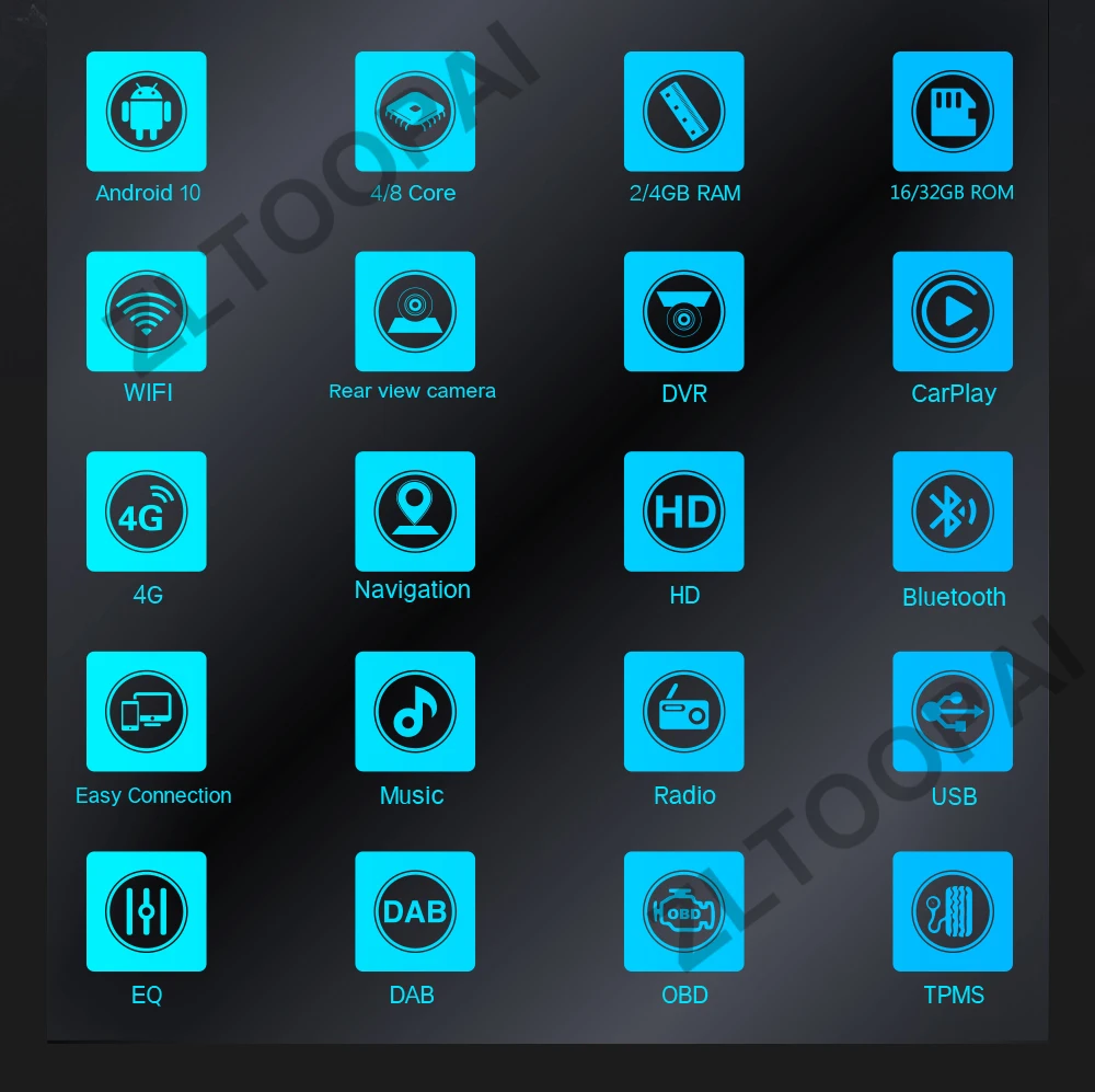 4 ядра 2 Гб ОЗУ 32 Гб ПЗУ: Поддержка wifi/usb carplay/RDS/DSP и т. Д.