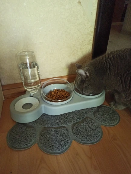 Хороший набор, кошка оценила)) Единственное, не понравилось как наполняется отсек с водой. Воды там наливается совсем мало, приходится надавливать на бутылку, чтобы вода налилась по края. А так набор отличный, тем более за 700₽