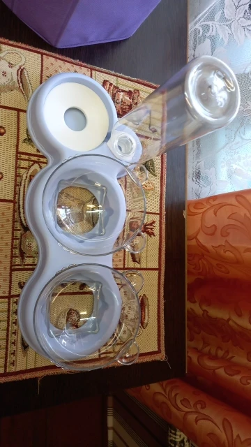 Пришёл не совсем целый, лопнутый один стаканчик там где прозрачное. И что то не то с бутылочкой, она не садиться на иголочку и вода не набирается