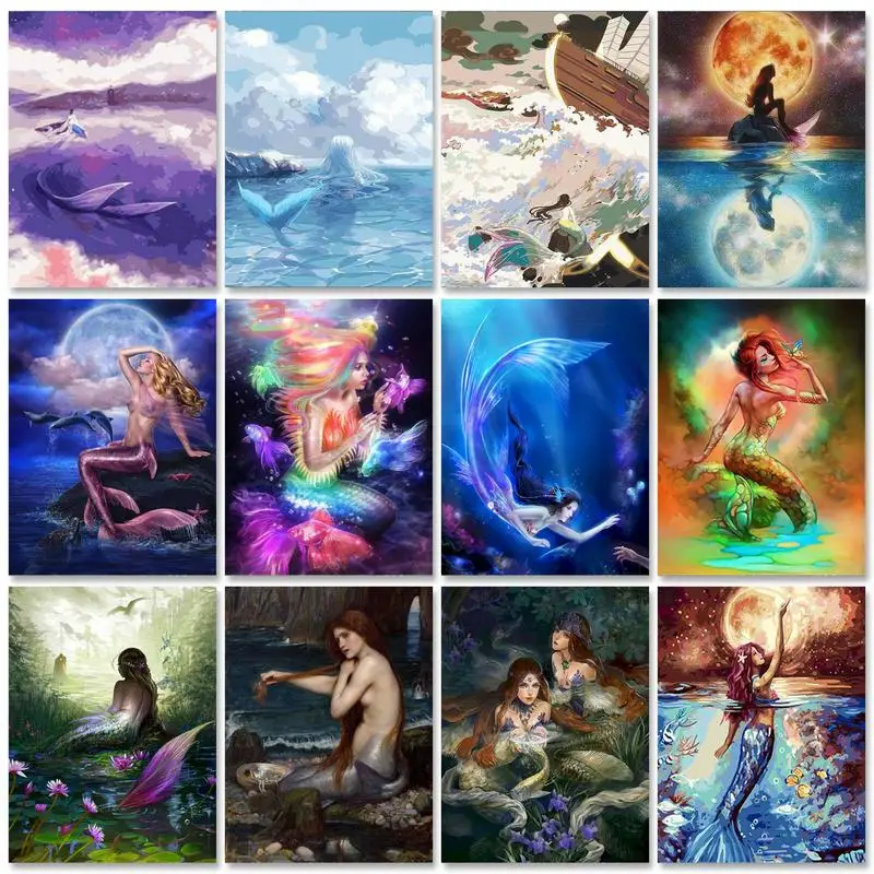 PhotoCustom 60x75 см Масло Краски ing по номерам Русалка декорации Краски по номерам на рисунок на холсте акварель по номерам домашний декор