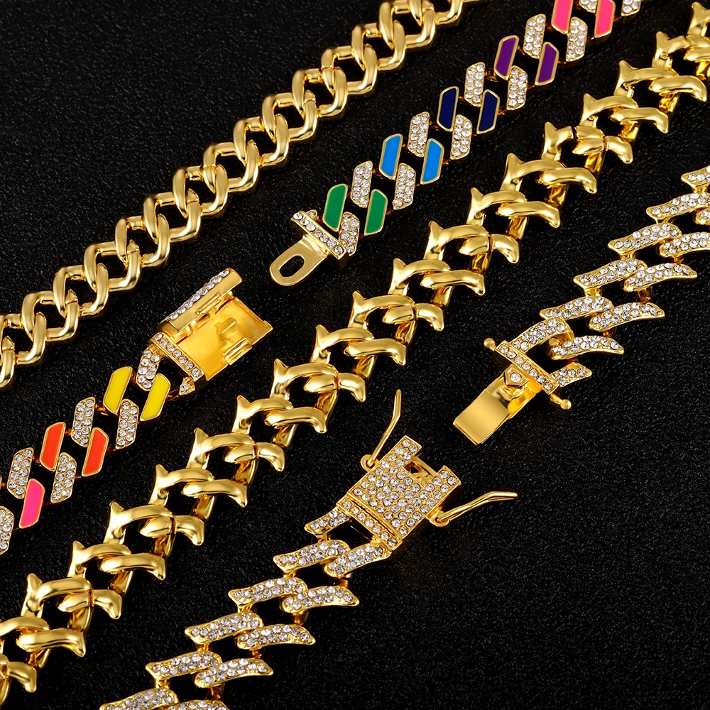 Цепочка для мужчин и женщин золотого цвета, выразительный ошейник Майами, украшенный блестками, рэпера для женщин, чокер в стиле хип-хоп, гранж, бижутерия