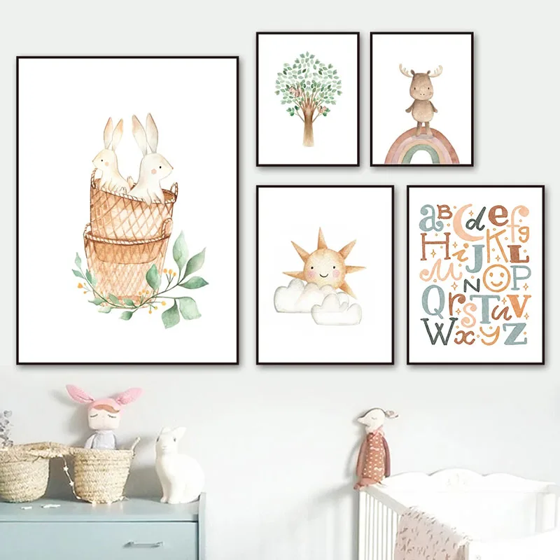 Детский постер с кроликом на заказ, Настенная картина для детской к...