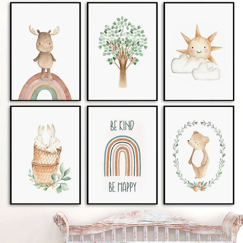 Настенный постер для детской комнаты с принтом радуги, животные, Ка...