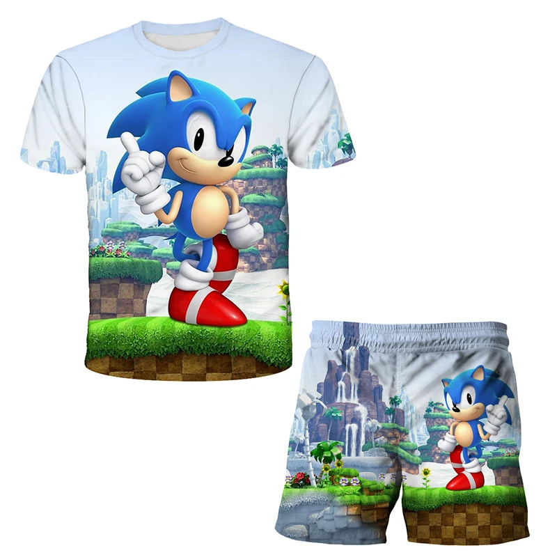 Летняя детская одежда 2021, костюмы с 3D-принтом Sonic, верх и шорт...