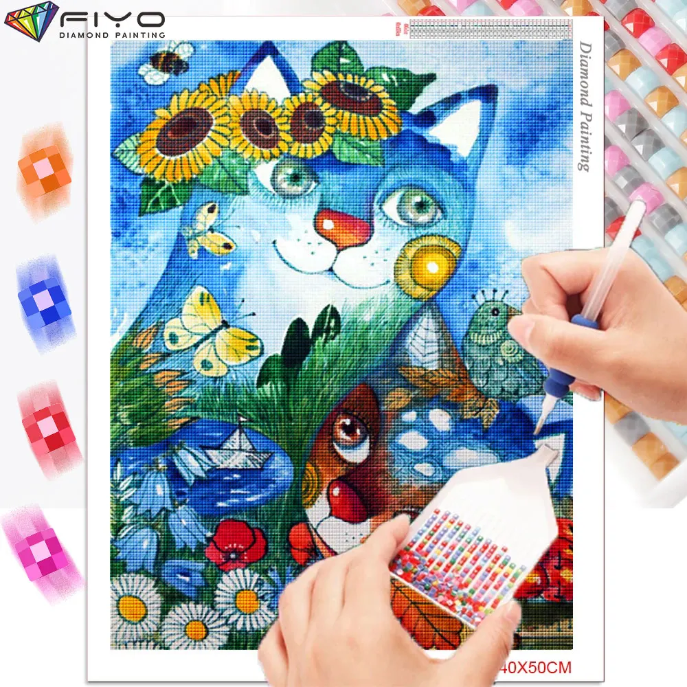 FIYO алмазов картина с изображением кота из мультфильма и квадратныйкруглый Бриллиантовая мозаичная фигурка животного комплект вышивка ручной работы подарок украшение дома Вышивка крестом