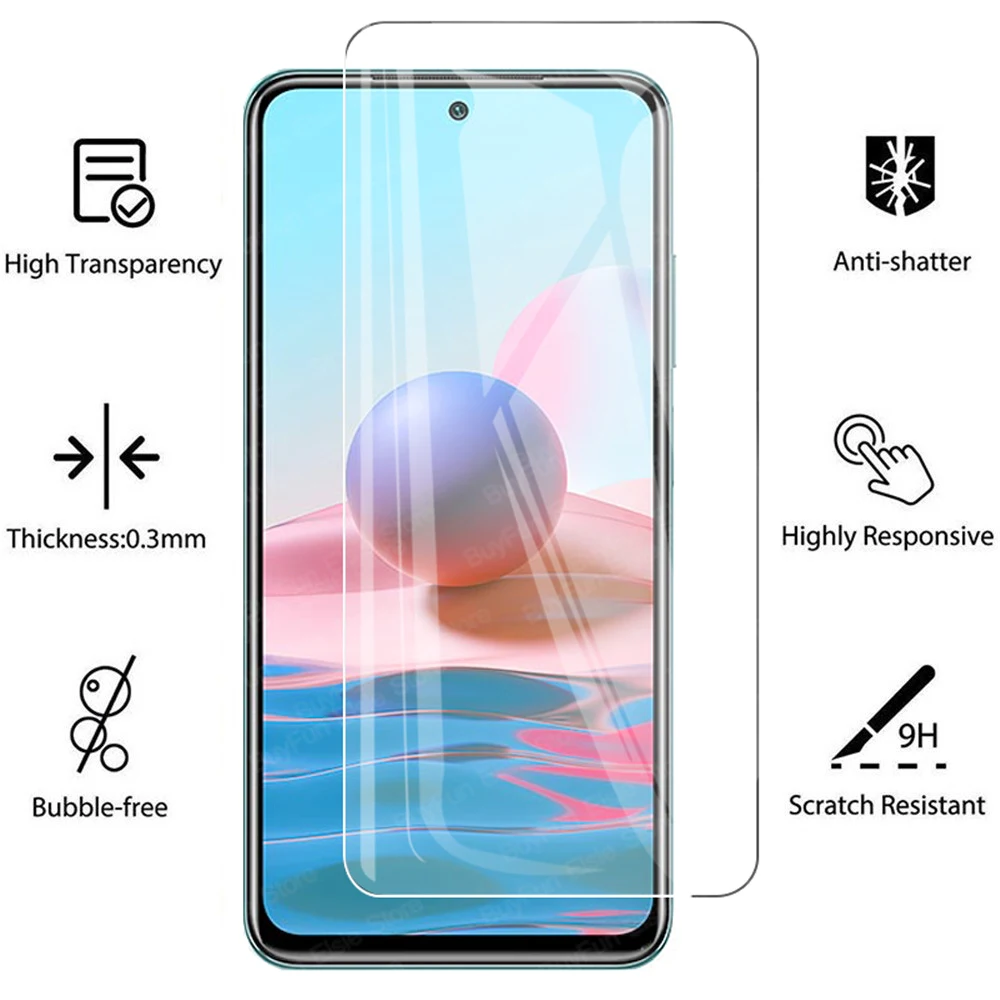 2 в 1 закаленное Стекло на Redmi Note 10 Камера объектив Экран защитная плёнка Защитное стекло для Remi (Реми), "конский хвост", обратите внимание на 10 pro 10s 10 5G Стекло с уровнем твердости 9H защитная пленка