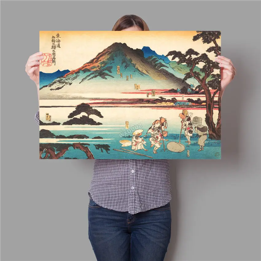 Постеры в стиле ретро с японским пейзажем, Самураем, для бара, кафе, гостиной, домашний декор, настенная живопись, HD Абстрактная живопись на холсте