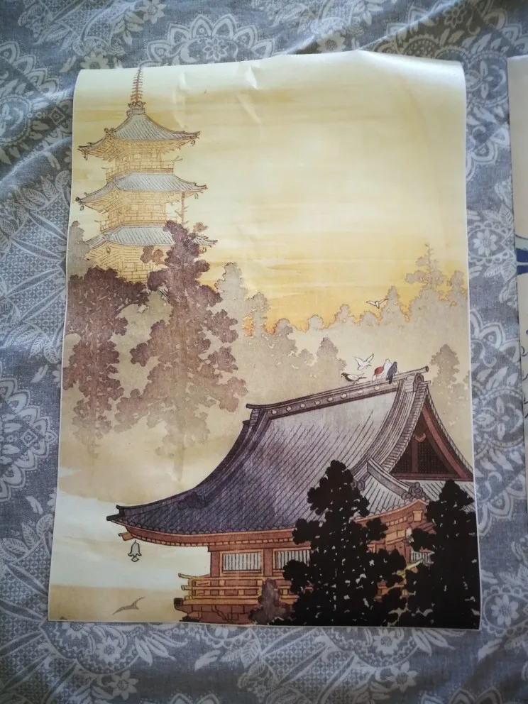 Это очень красиво, это не бумага, это как холст, поэтому он делает его красивее, просто немного трудно приклеить материал, как на картинке, это маленький, потому что это 15x21 см, он прибыл намного раньше, чем ожидалось
