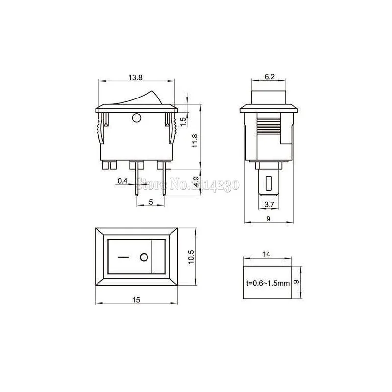 300 шт., кнопочный переключатель, 3 А, 250 В, KCD11, 23 контакта, 10 мм * 15 мм