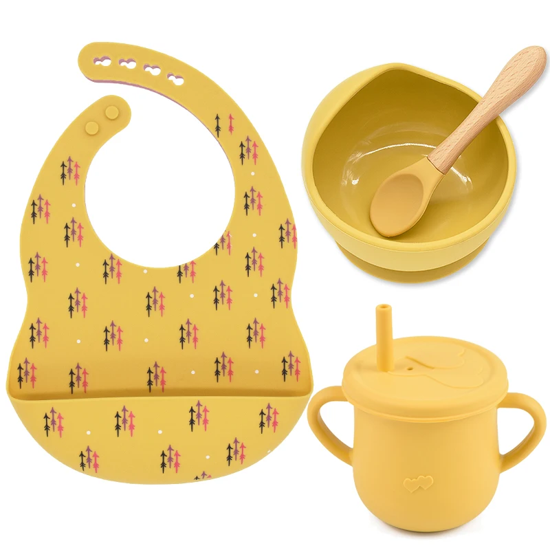 4 шт.компл. детская силиконовая посуда, водонепроницаемый нагрудник с принтом в виде сердца, чашка для пищевых продуктов, чашка без присоски, аксессуары для кормления детей