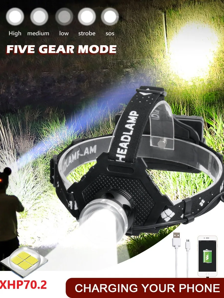 Супер XHP100 Мощность Фул СВЕТОДИОДНЫЕ Фары Светильник Перезаряжаемые рыболовный головной светильник XHP90 Usb зум головки вспышки света светильник высокого Мощность светодиодный головной лампы