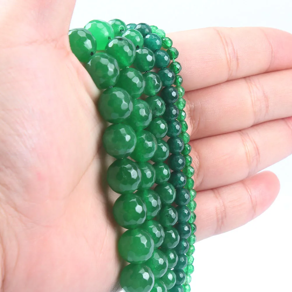 4-12 мм природных граненые зеленым халцедоном каменные бусы круглые бусины для изготовления ювелирных изделий Diy браслет ожерелье оптовая продажа