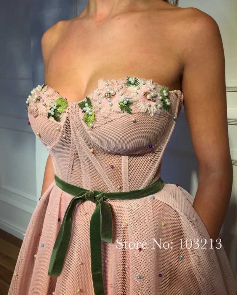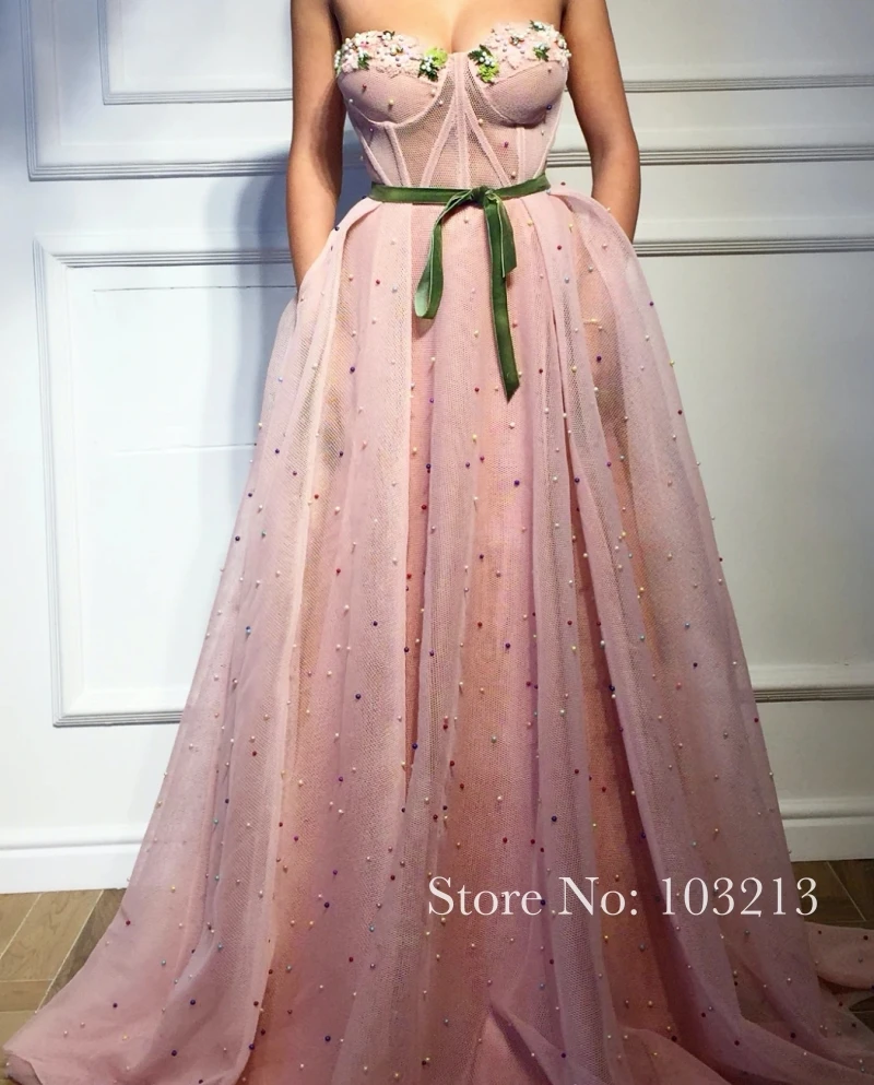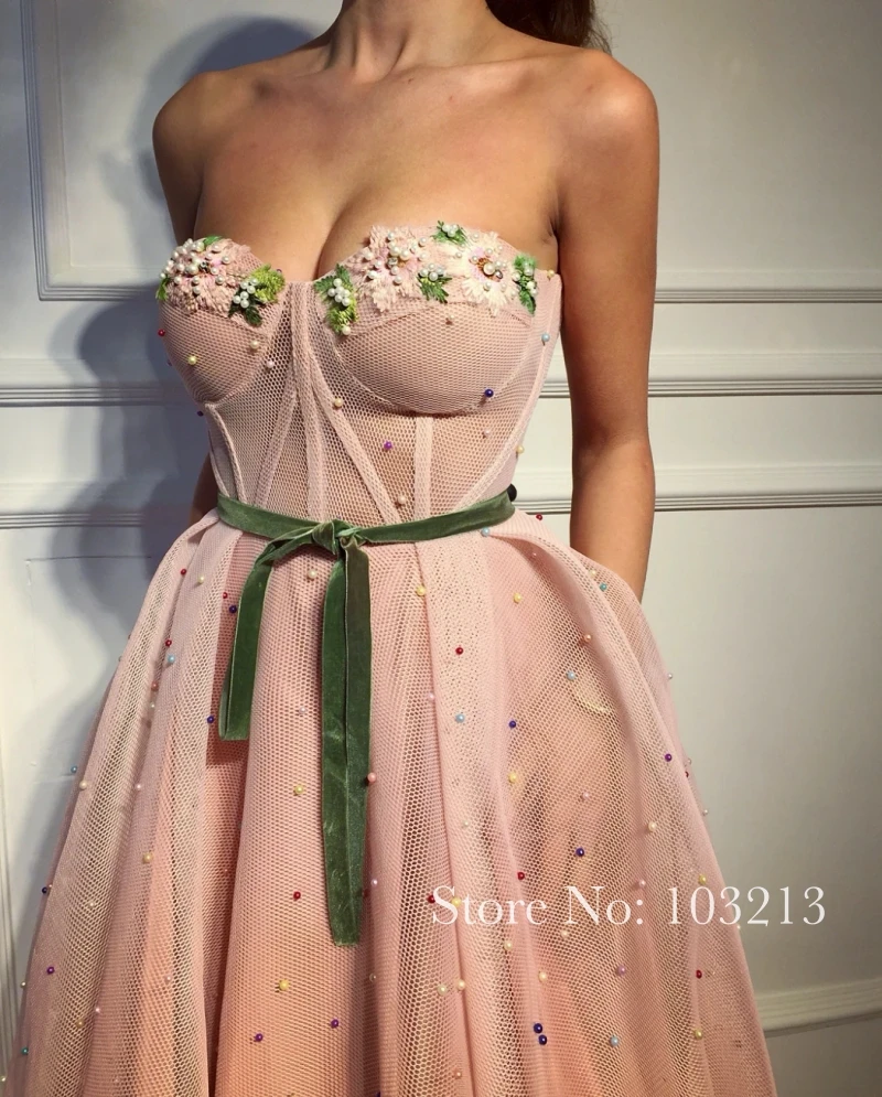 Привлекательные розовые платья на тонких бретелях для выпускного вечера, вышитое бисером, Тюлевое платье с цветами ручной работы на заказ