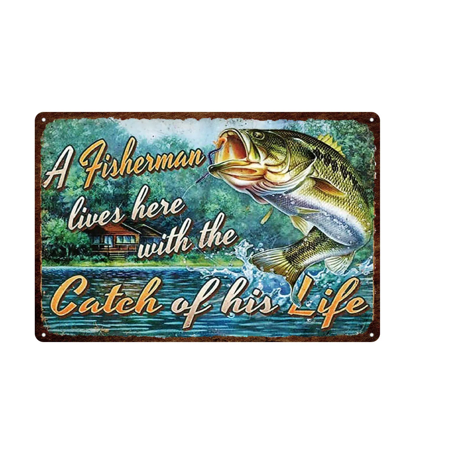 Ловить рыбу винтажные металлические знаки ржавые потертый декоративного искусства адвокатского сословия плиты гараж Кухня стенные бляшки Декор жестяная вывеска человек пещера плакат