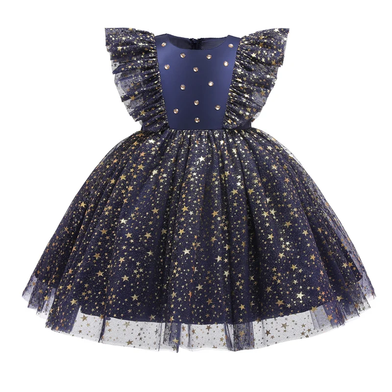 Платье принцессы со сверкающими звездами для маленьких девочек, пла...