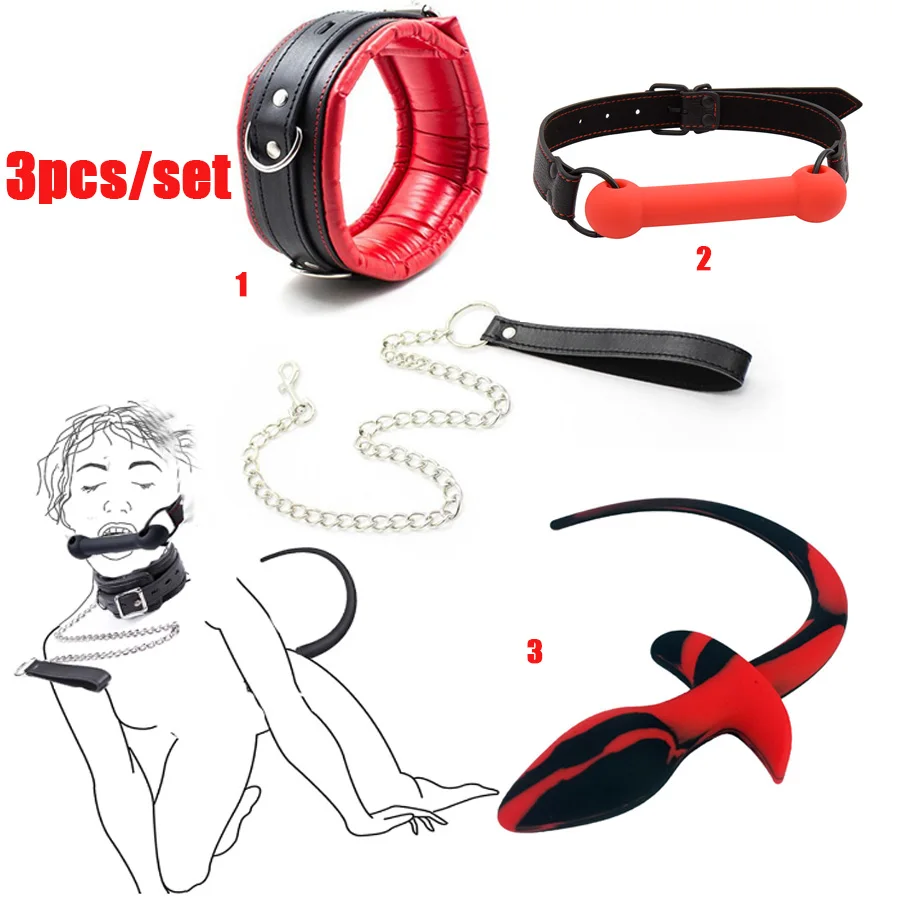 БДСМ щенок сексуальный шейный воротник с поводком силиконовая кость для собак укус кляп, щенка Тай анус влагалище расширитель Slave Косплэй игры для взрослых секс-игрушки