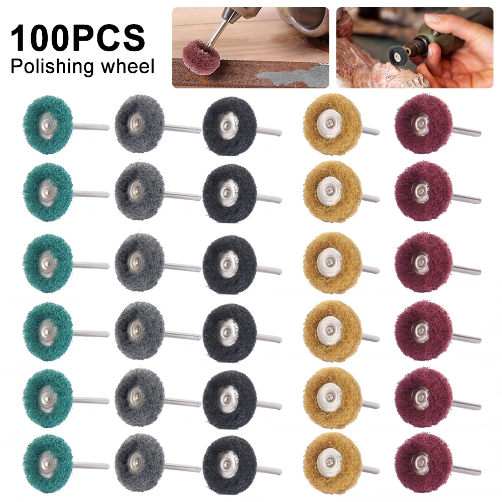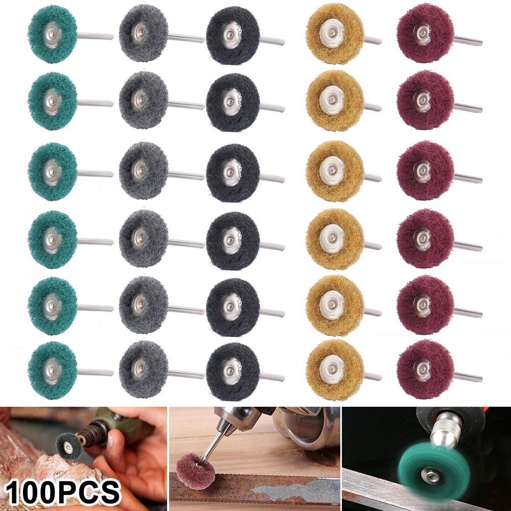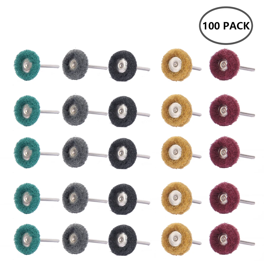 100 шт. мини щетки губки с абразивным кругом нейлон для шлифования оптоволоконных кабелей Шлифовальная головка Полировочный диск с фокусным расстоянием 25 мм Набор для Dremel