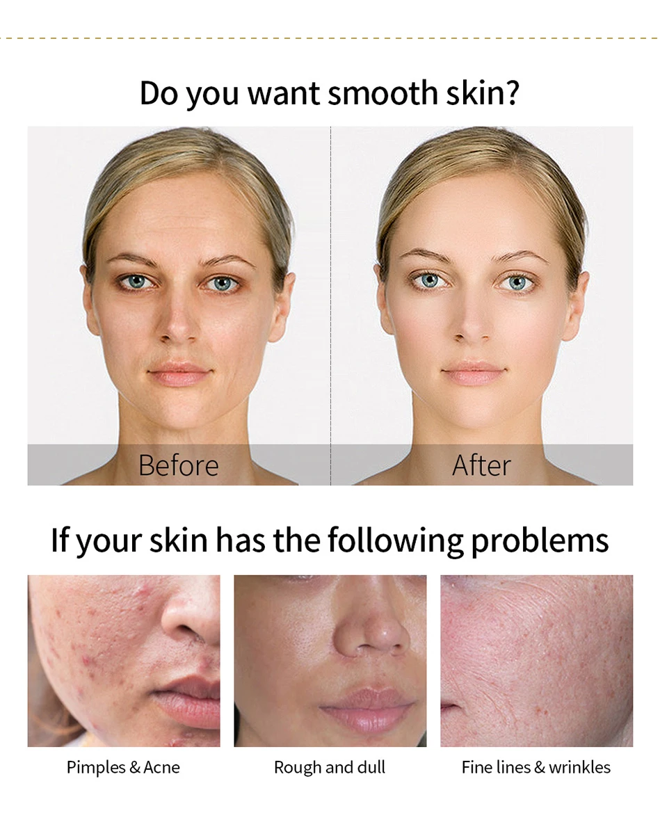 День 1 кожа влажная и гладкая после использования;День 7 улучшает грубый и drynessskin излучает здоровый блеск;Дневной 28 кожа Прочная и яркая эластичная, с нежными порами.