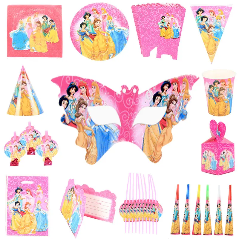 Шесть принцессы тема снег белый день рождения вечерние украшения Золушка тема скатерть чашка тарелка соломенная сумка Baby Shower поставки