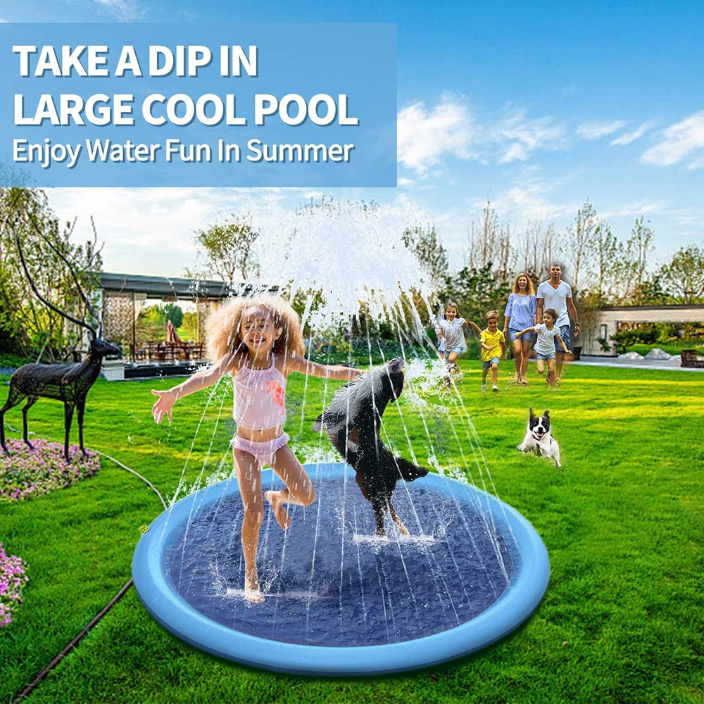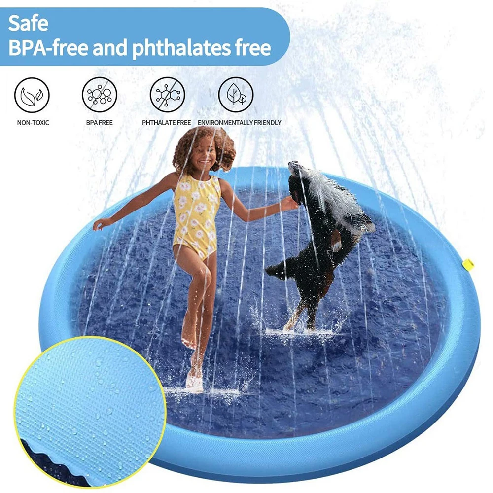 Бассейн для разбрызгивания собак-Открытый коврик для воды и фонтан для купания для домашних животных-Толстый ПВХ материал, нескользящая подошва, подключается к стандартным садовым шлангам-летняя, лужайка и дворовая игрушка