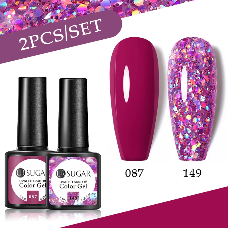 Набор гель-лаков UR SUGAR, 2 шт., блестящий лак, Полупостоянный лак для ногтей, верхнее покрытие, УФ светодиодная лампа, набор для ногтей