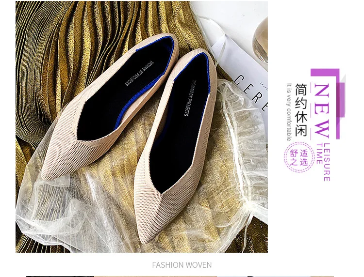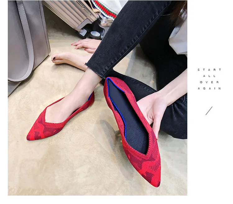 Балетки женские с заостренным носом, повседневные мягкие дышащие вязаные туфли, плоская подошва, мокасины для беременных, разные цвета