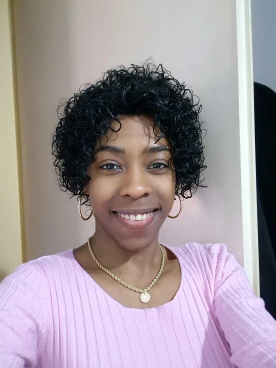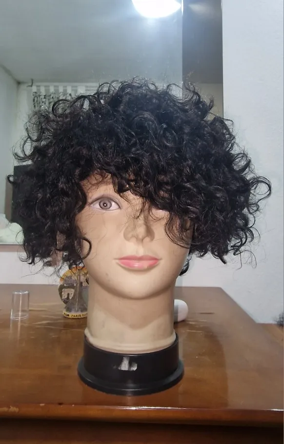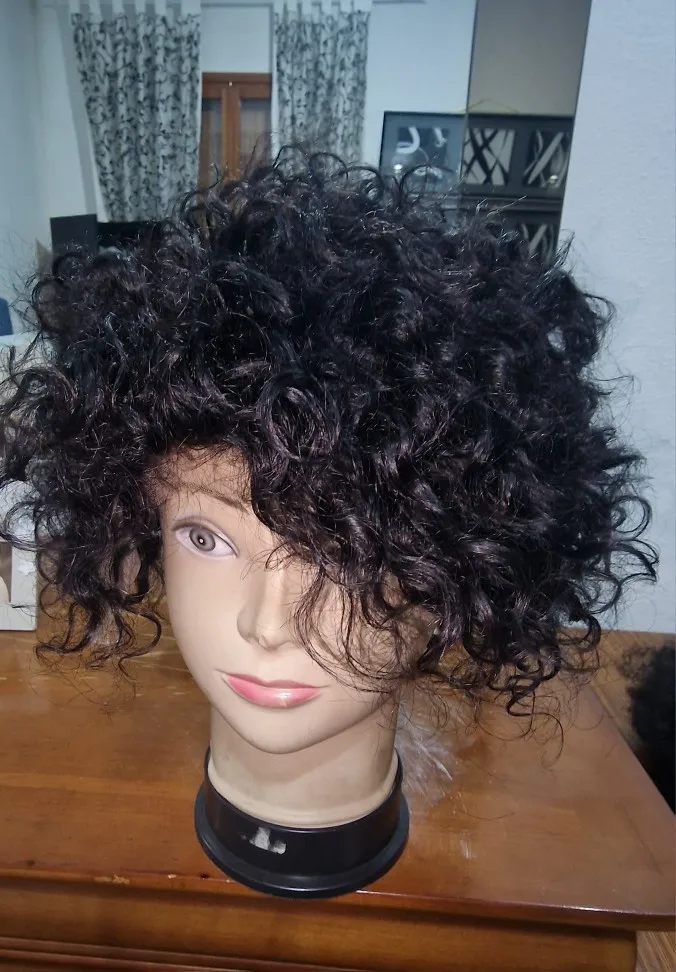 Парик из натуральных волос с коротким кудрявым эффектом, 99J