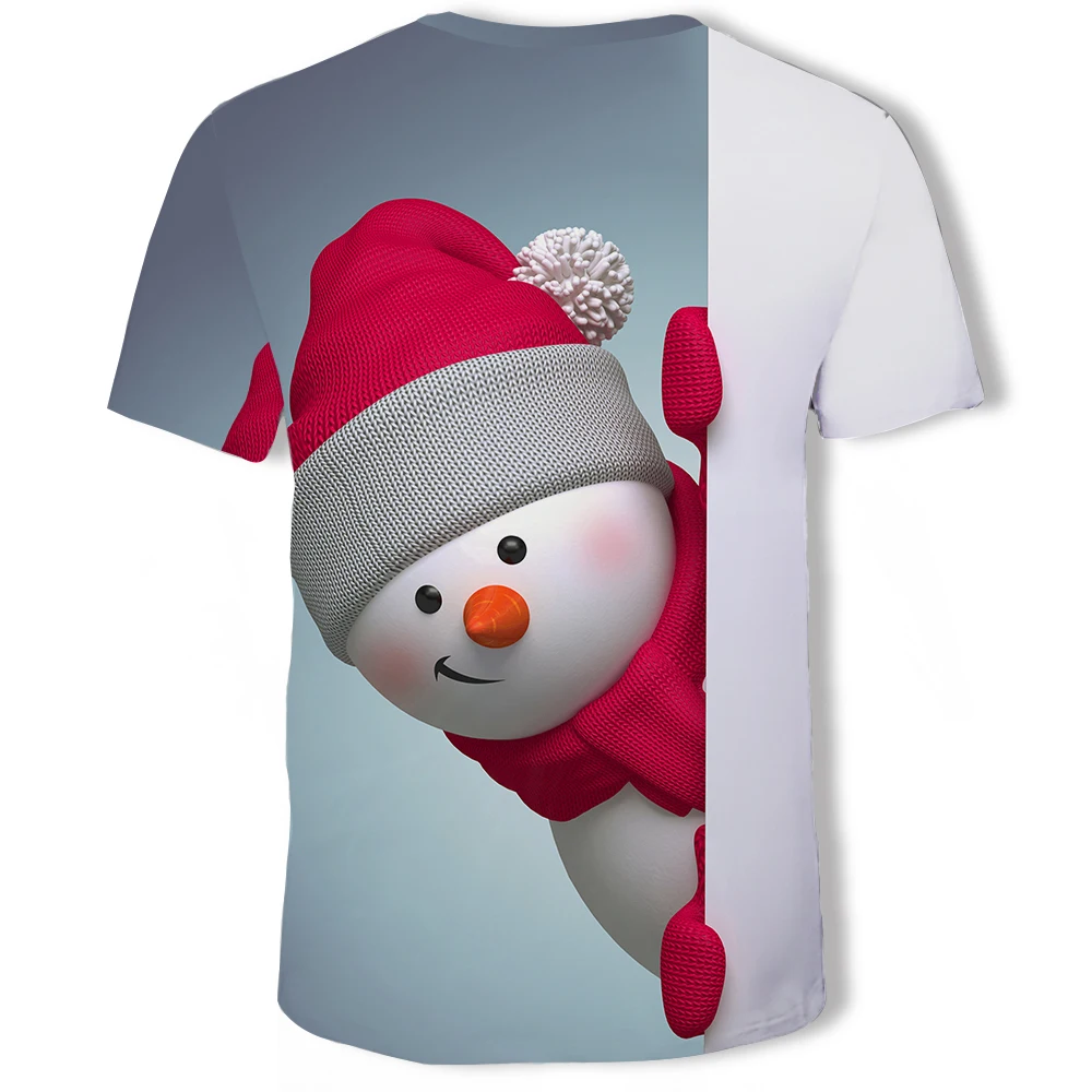 Летняя мужская и женская футболка с рождественской тематикой, с изображением снеговика, уличная индивидуальная футболка большого размера с круглым вырезом и короткими рукавами, 3d-печать