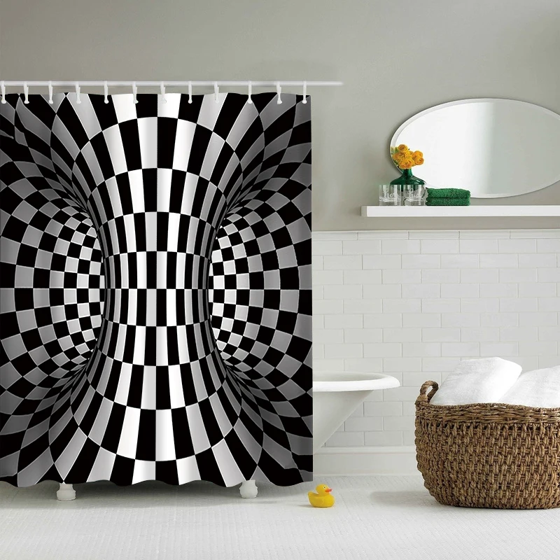 3D Черный и белый вихревой узор для ванной Шторы Водонепроницаемый душ Шторы s геометрический для Экран печатных Шторы для Ванная комната
