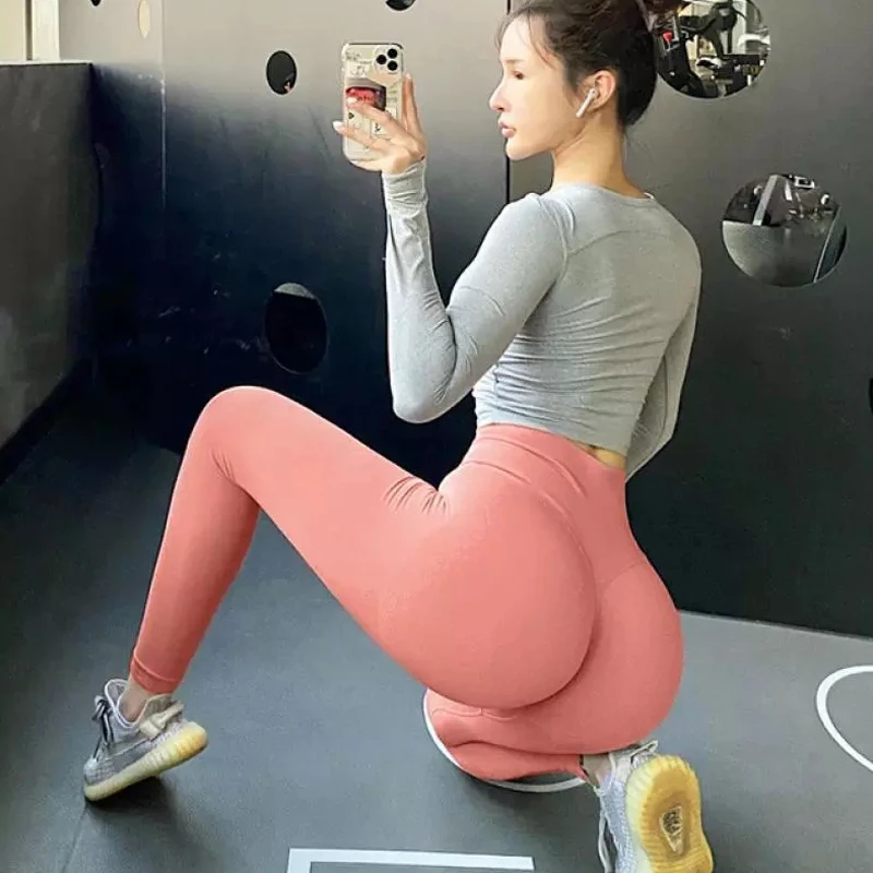 Женские штаны для йоги с высокой талией, приподнятые бедра, персико...