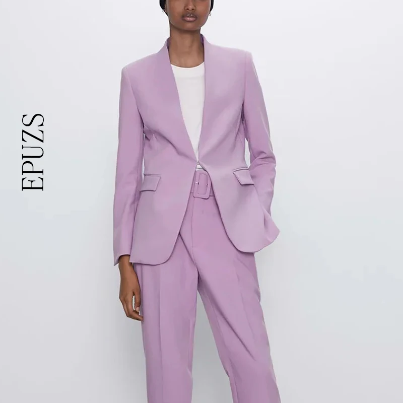 Женский блейзер на одной пуговице ZA, винтажный фиолетовый блейзер с длинным рукавом, для офиса, 2021