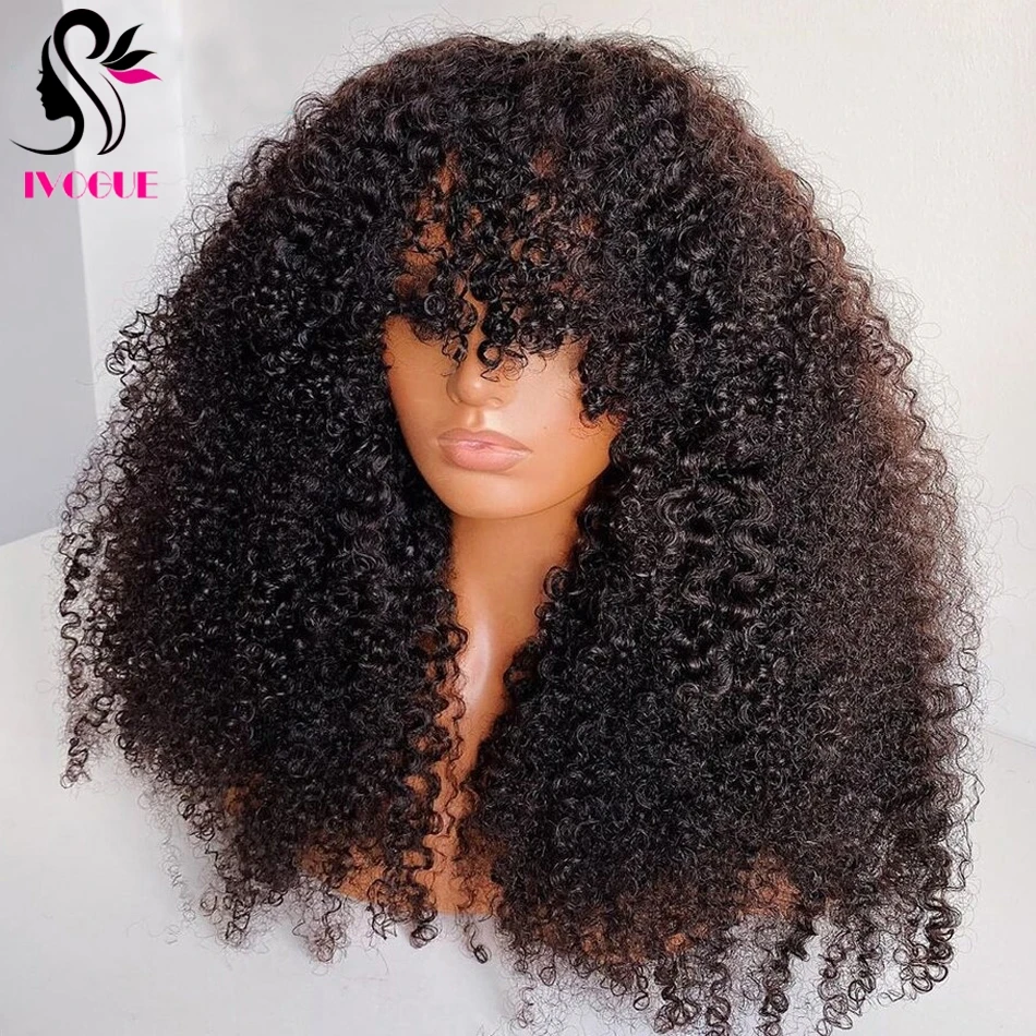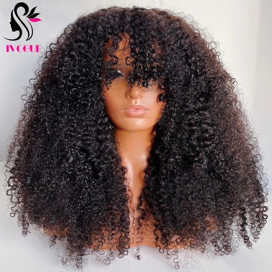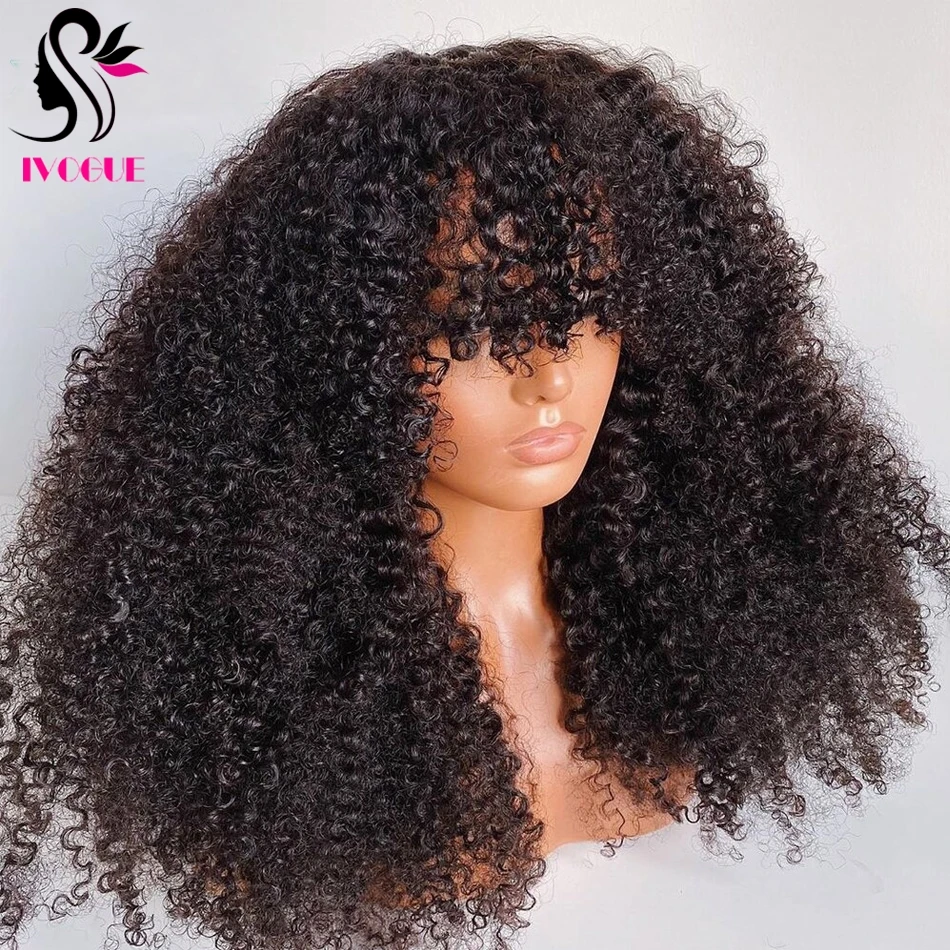Кудрявые вьющиеся парики из человеческих волос с челкой, бразильски...