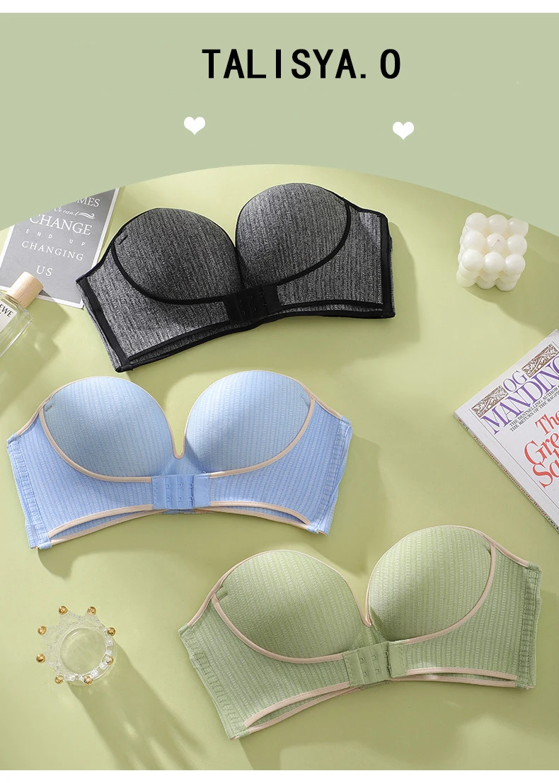 Женский бюстгальтер пуш-ап без бретелек, с застежкой спереди