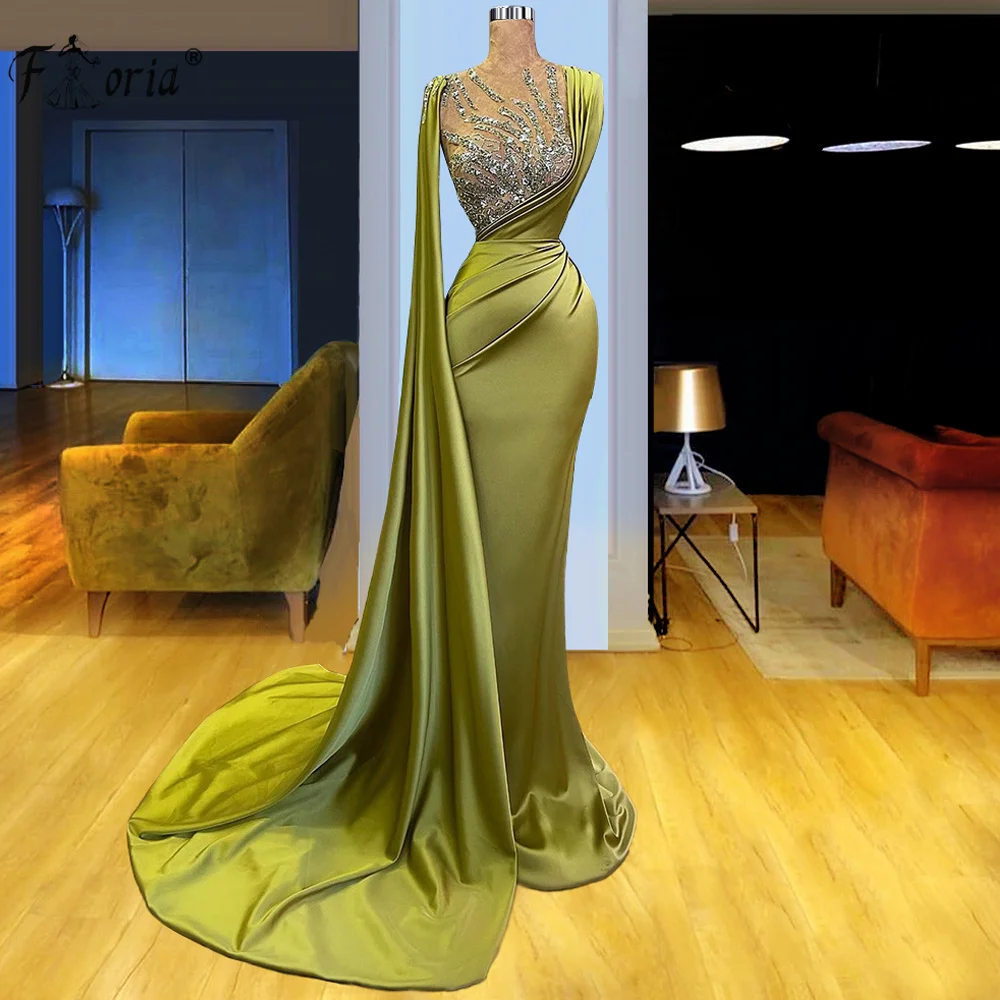 Арабское зеленое атласное вечернее платье-Русалка с накидкой Дубаи роскошные вышитые бисером официальные платья для выпускного вечера для женщин Свадебные платья