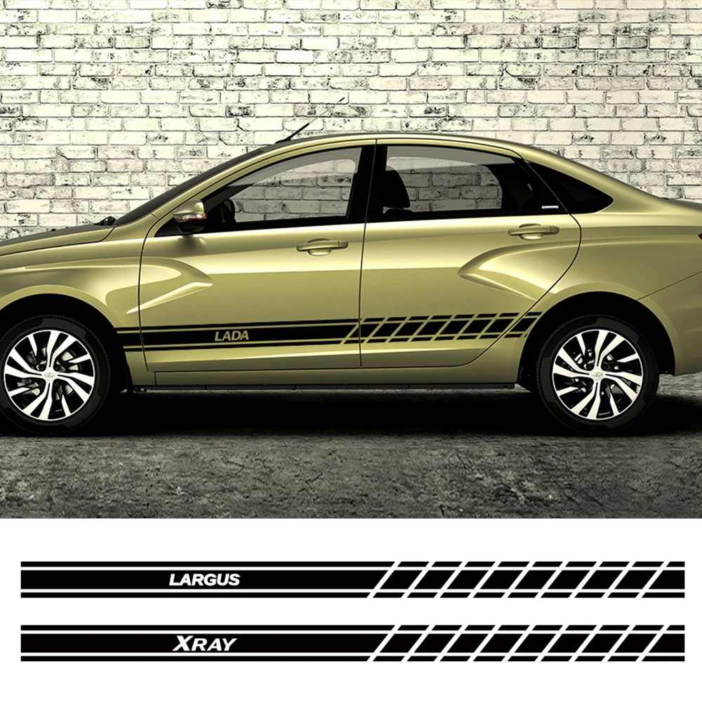 Автомобильные аксессуары для Lada Xray Largus Granta Niva, 2 шт., спортивные украшения, наклейки на дверь автомобиля, боковая юбка, полосы, наклейки из виниловой пленки