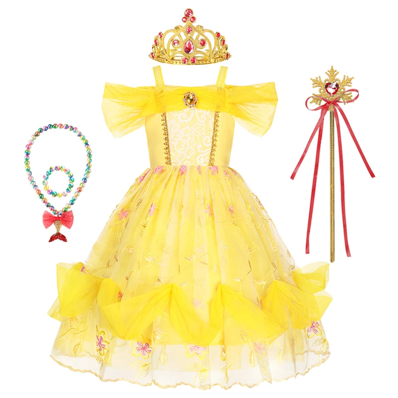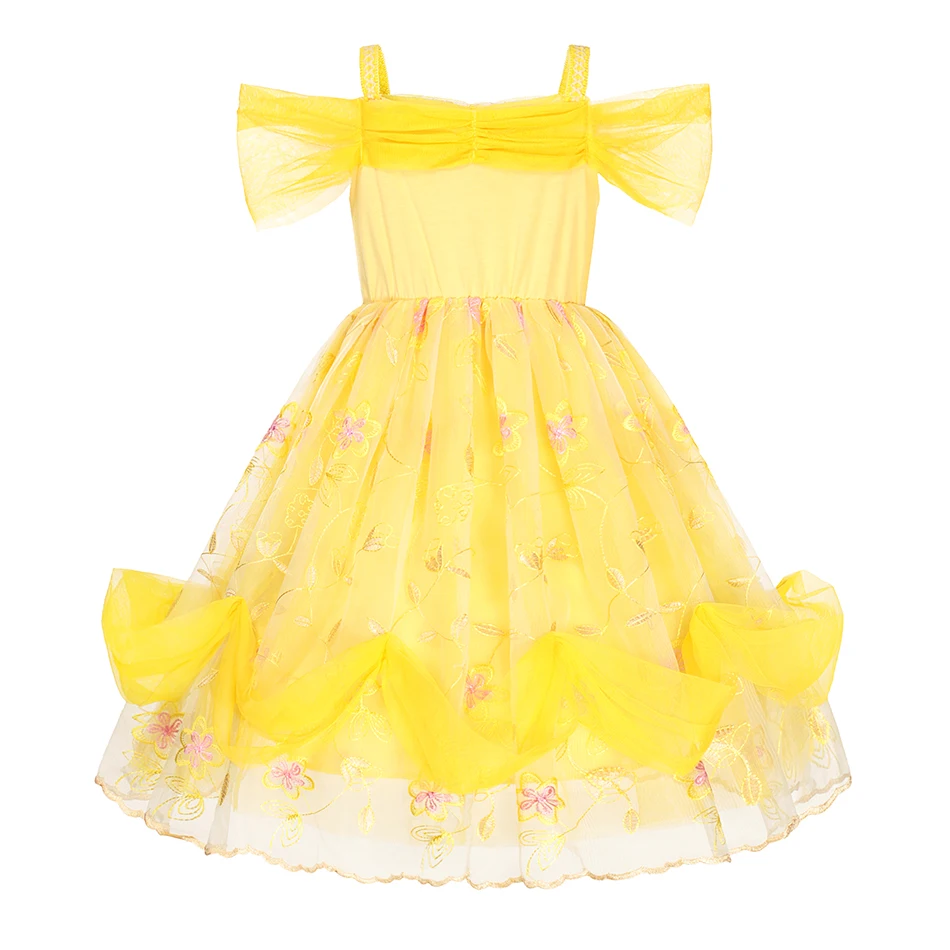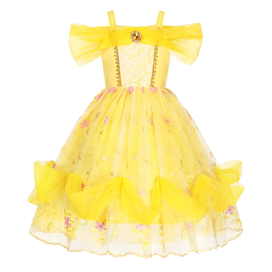 Платье принцессы Белль для девочки, детское бальное платье с цветочным рисунком, Детский костюм для косплея Bella Красавица и чудовище, необывечерние
