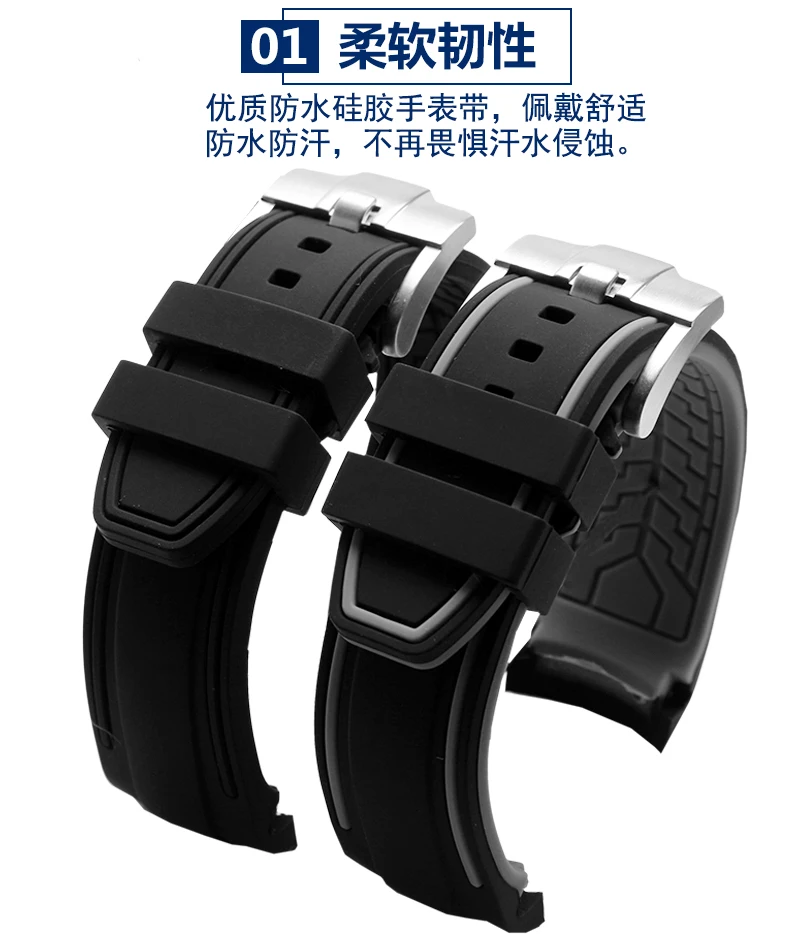 Ремешок для часов Seiko Longines Rolex, спортивный резиновый брасле...