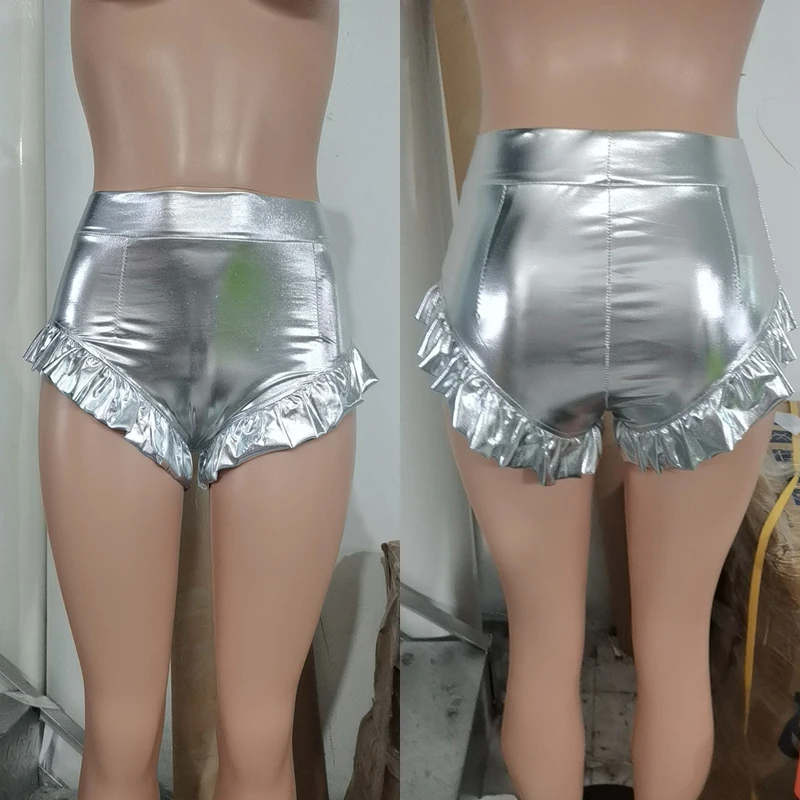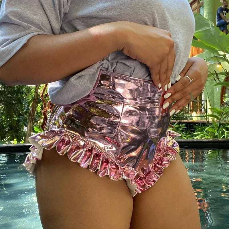 Сексуальные блестящие шорты HAOYUAN с оборками металлик из ПУ кожи, женская летняя одежда, шорты Y2k, праздничные Клубные шорты с высокой талией