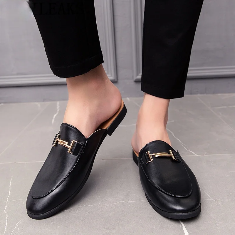 Черный, полуботинки для мужчин Кожаная мужская обувь без задника; Повседневная обувь для мужчин; Модная мужская обувь; Мужские мокасины; Chaussure 2021