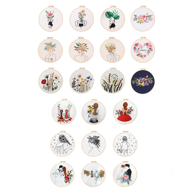 1 шт 20 см/8 дюймов пластиковый обруч с вышивкой1 шт. хлопчатобумажная ткань с вышивкой с рисунком1 Набор нитей для вышивки2 шт. иглы для вышивки1 шт. инструкции на английском языке