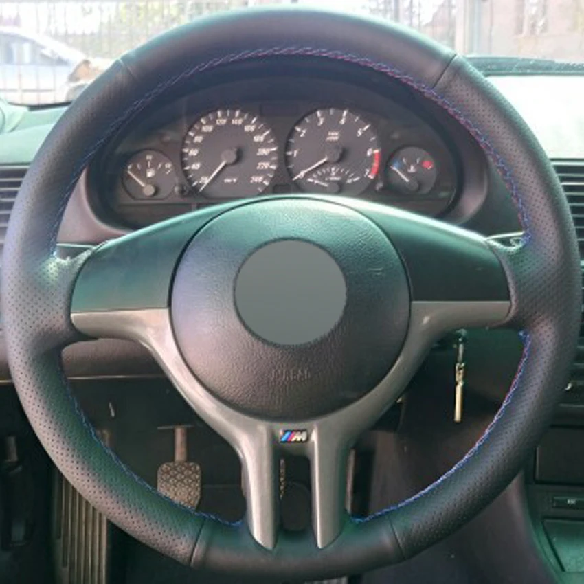Черный ПУ Искусственная Кожа DIY Чехол рулевого колеса автомобиля для BMW 3 серии E46 2000-2006 5 серии E39 2000-2003 E53 X5 Z3 E36 2000-2002