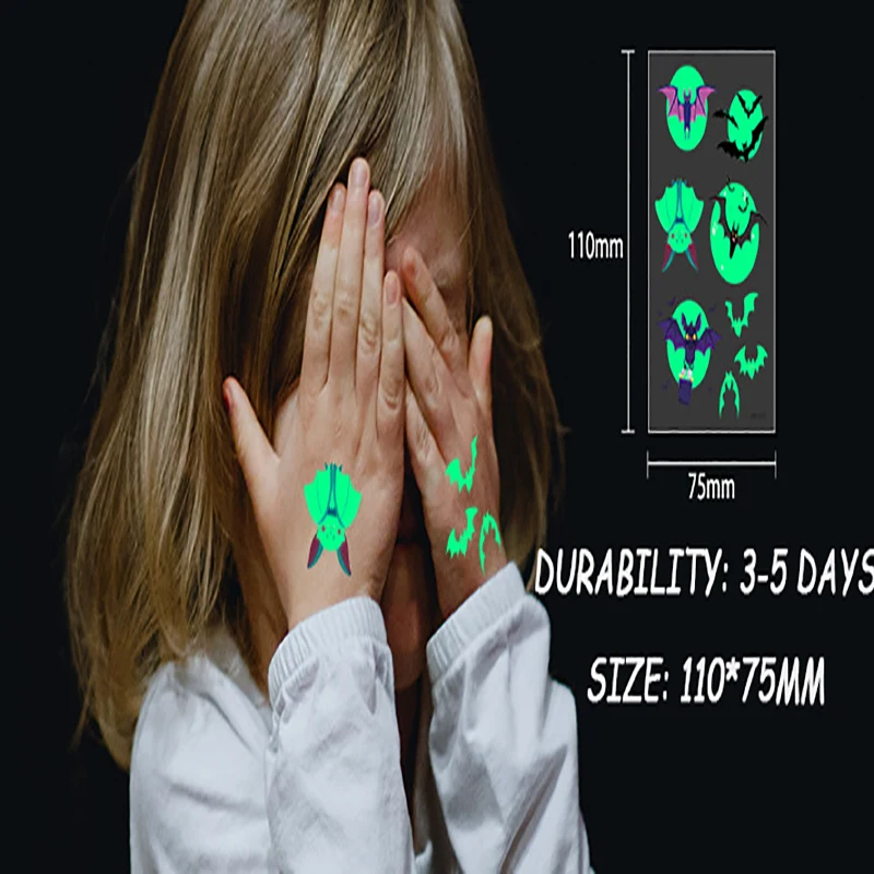 Тип: флуоресцентная зеленая 3D одноразовая Временная светящаяся тату-наклейка летучая мышь светящаяся тату-наклейка