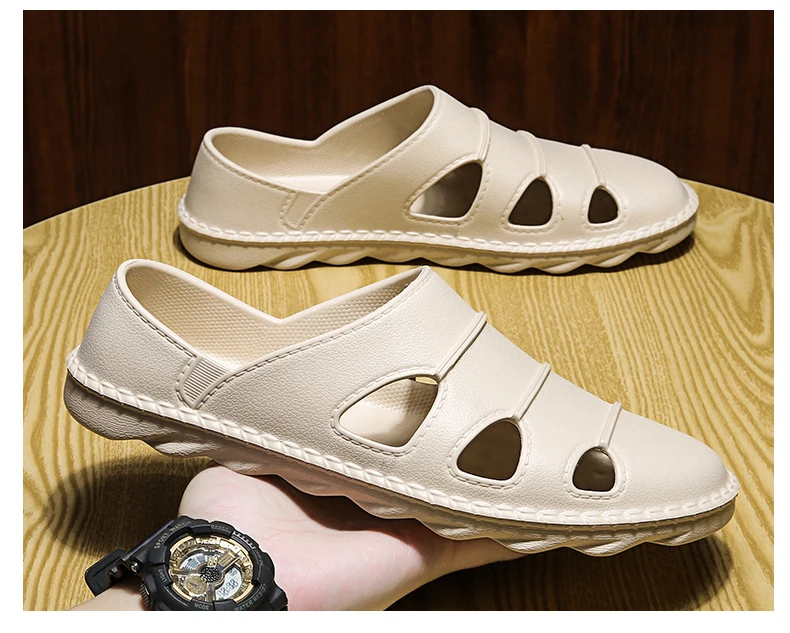 Мужские сандалии большого размера, Новинка лета 2021, кожаные сандалии с отверстиями, Мужская модная повседневная обувь, мужская обувь