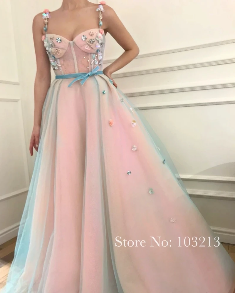 Стильные трапециевидные Вечерние платья на тонких бретельках для выпускного вечера, женские вечерние платья ручной работы с цветами и поясом