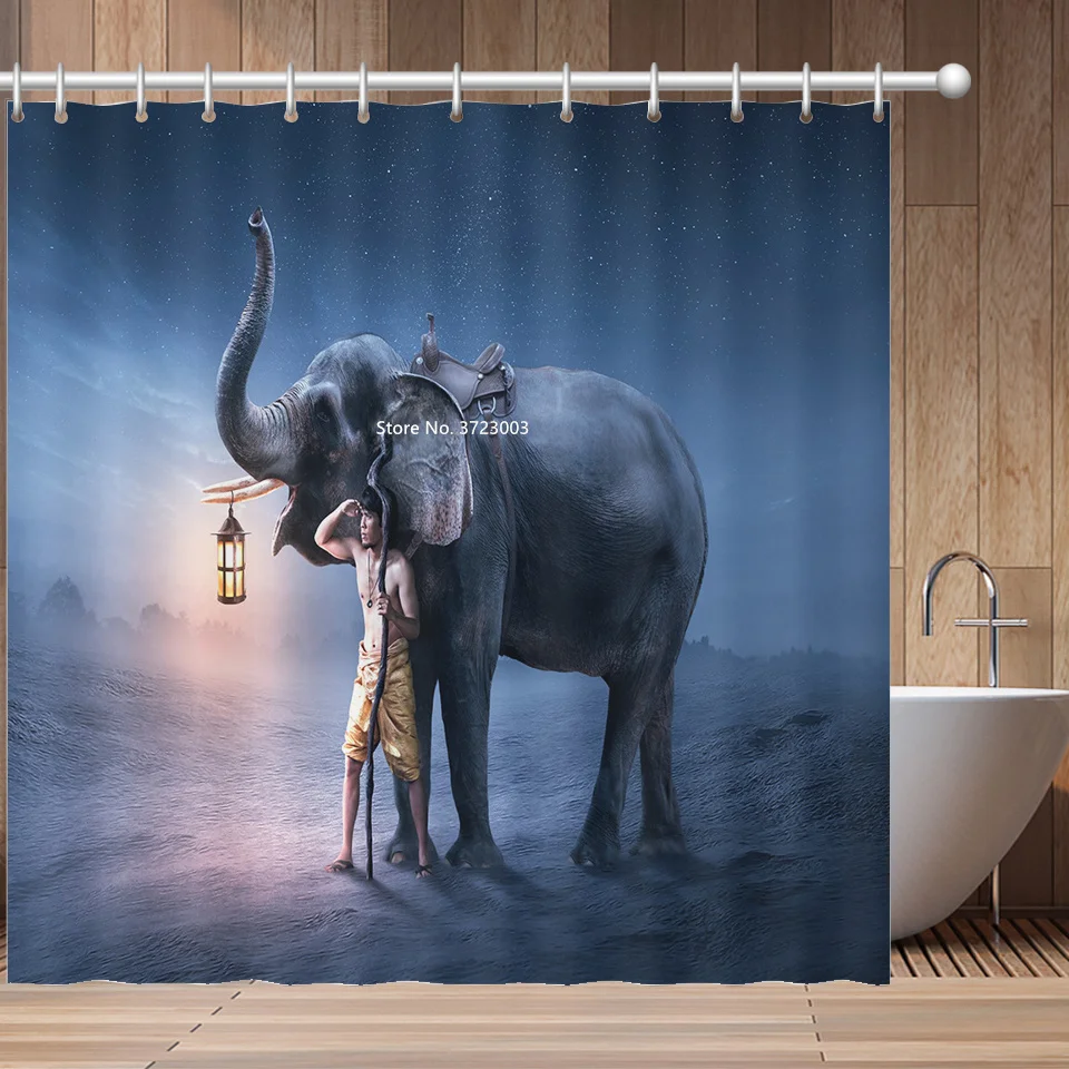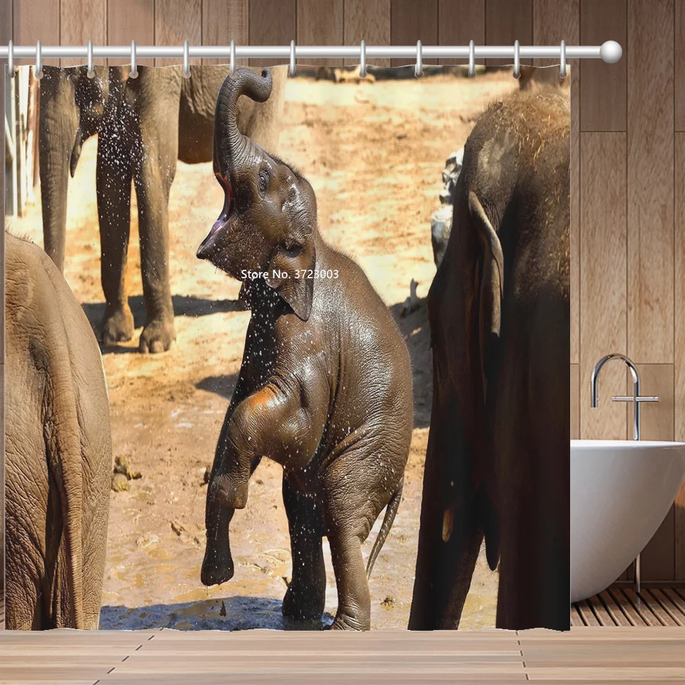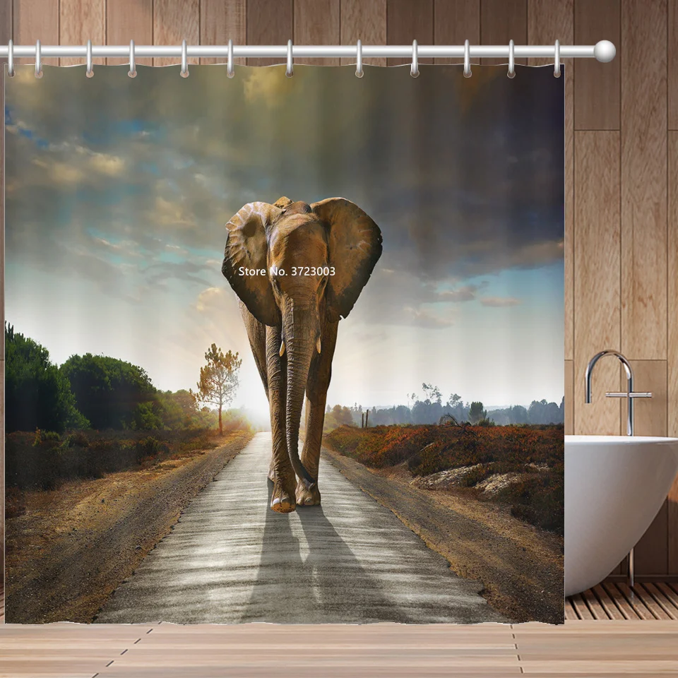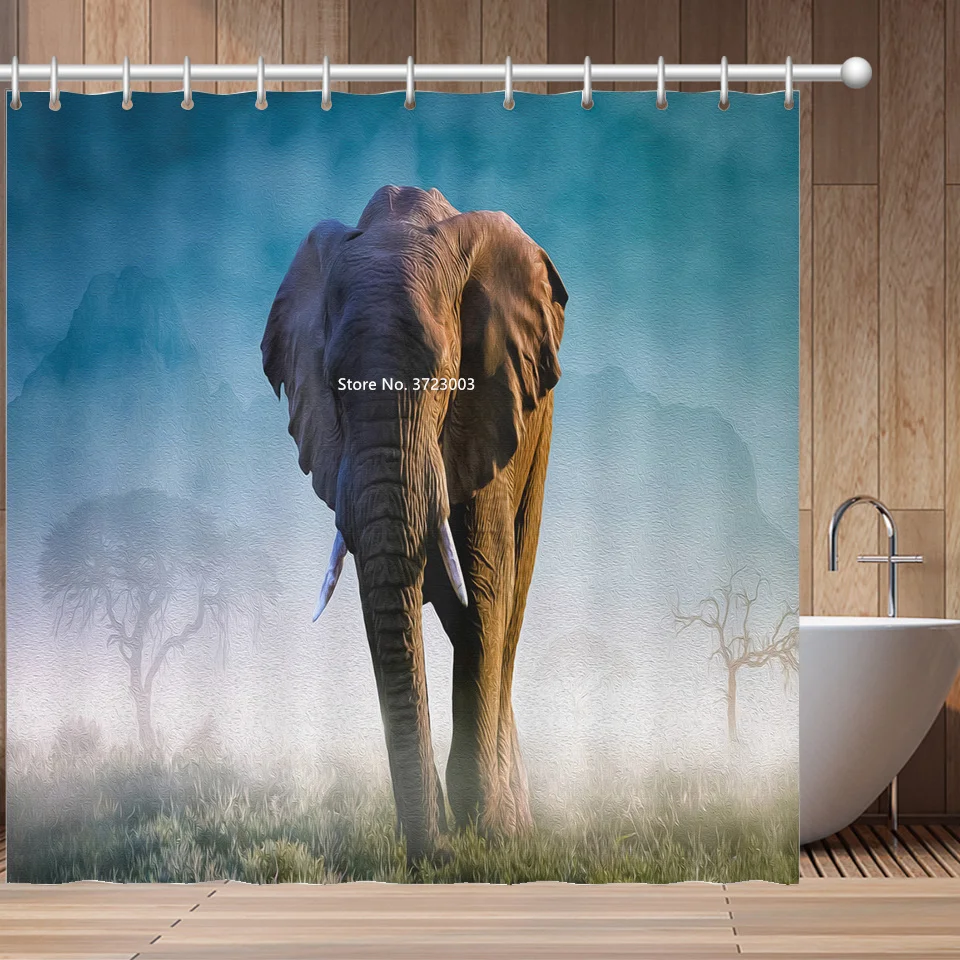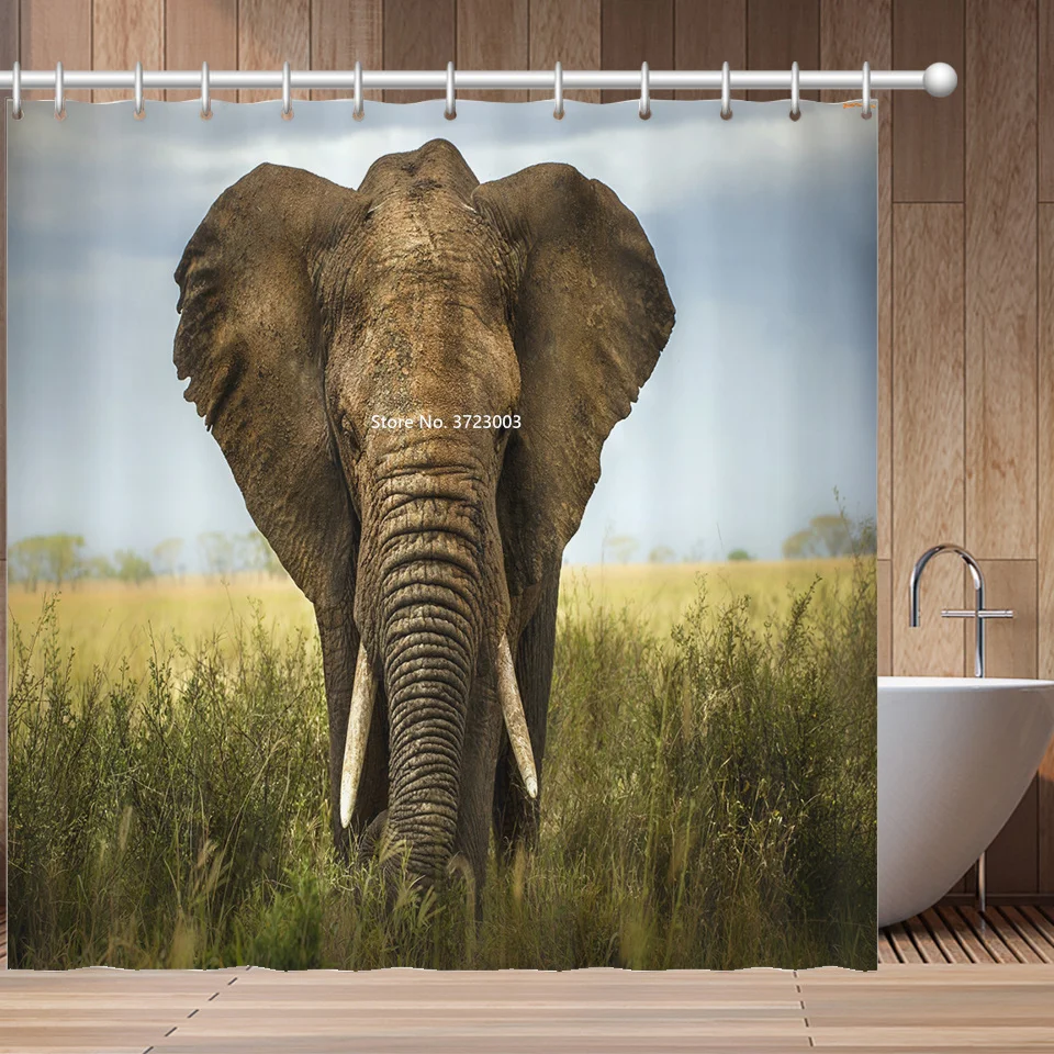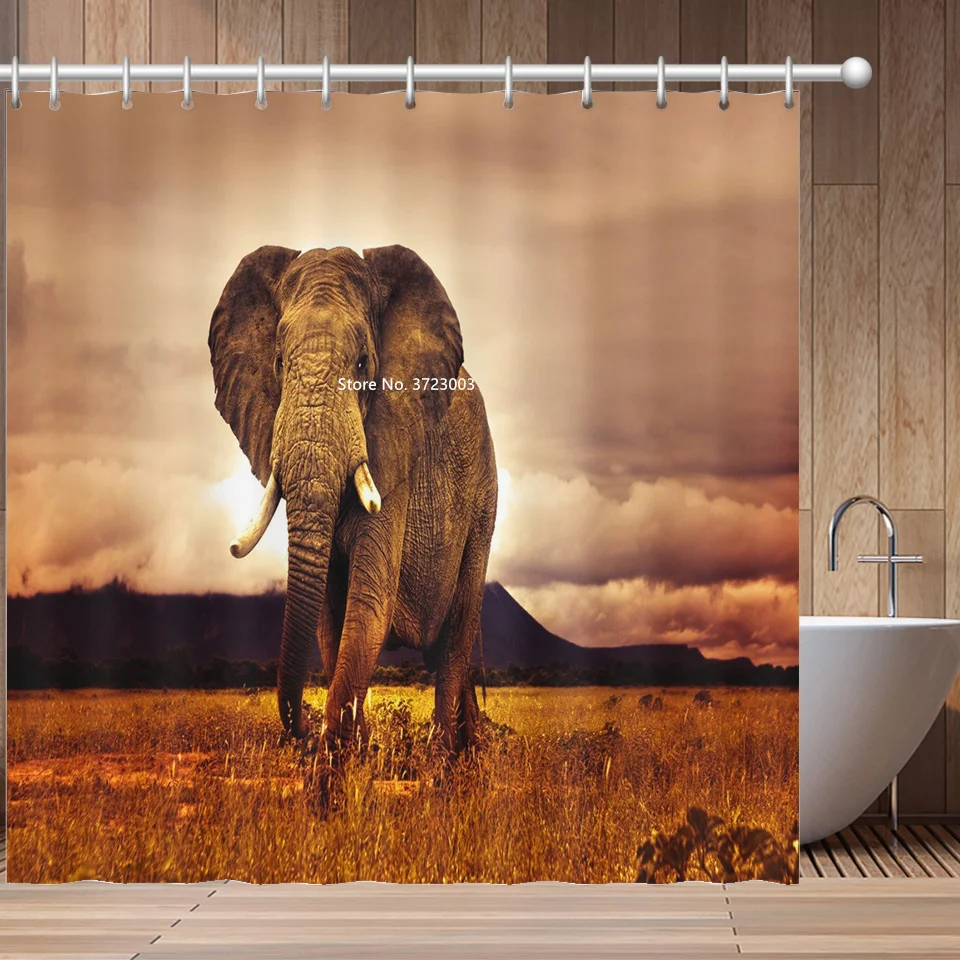 Африканская красавица, С Рисунком Слона и принтами животных Душ Шторы Ванная комната украшения Водонепроницаемый тканевая перегородка для душа Шторы