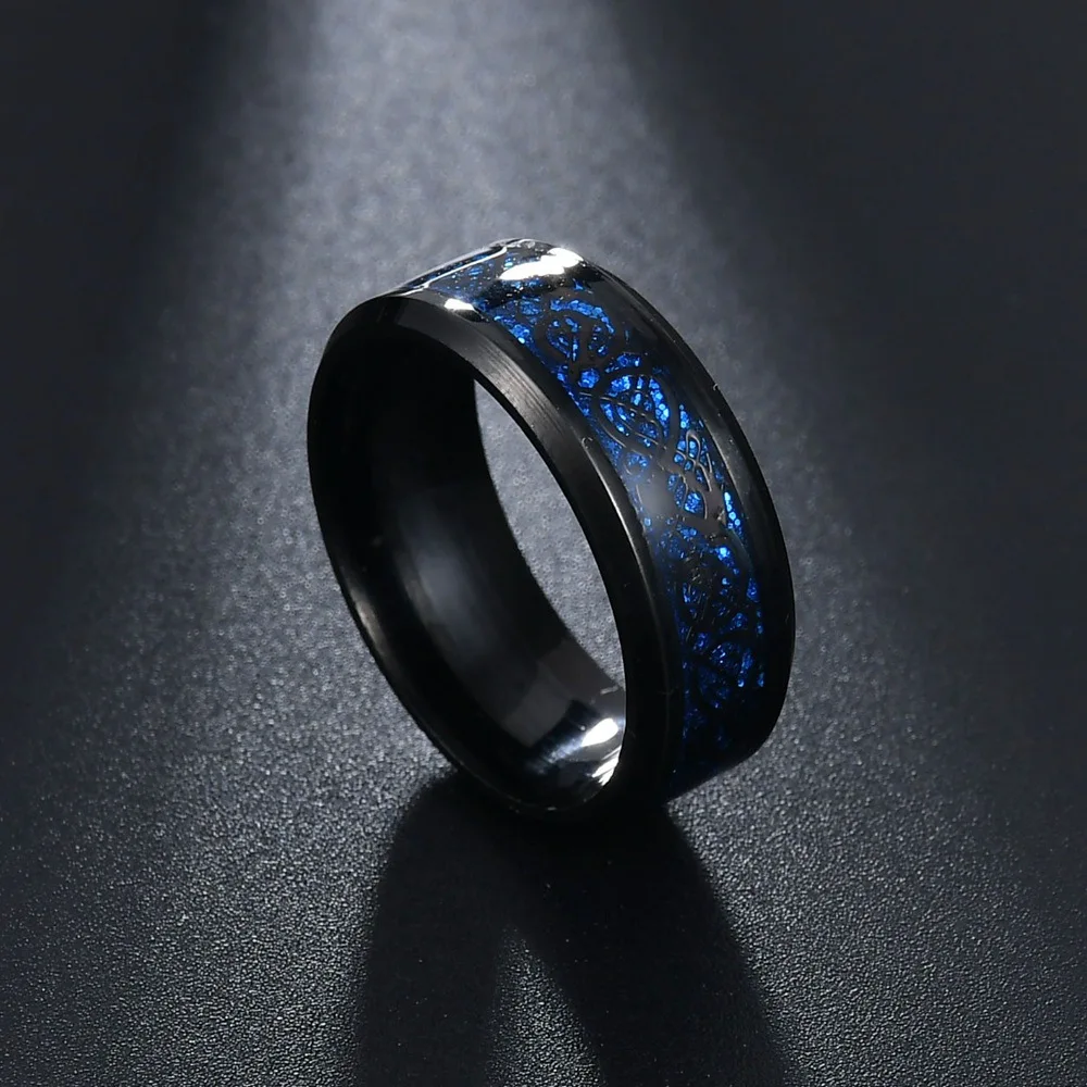 Кольцо с драконом из титановой стали красное зеленое углеродное вол...